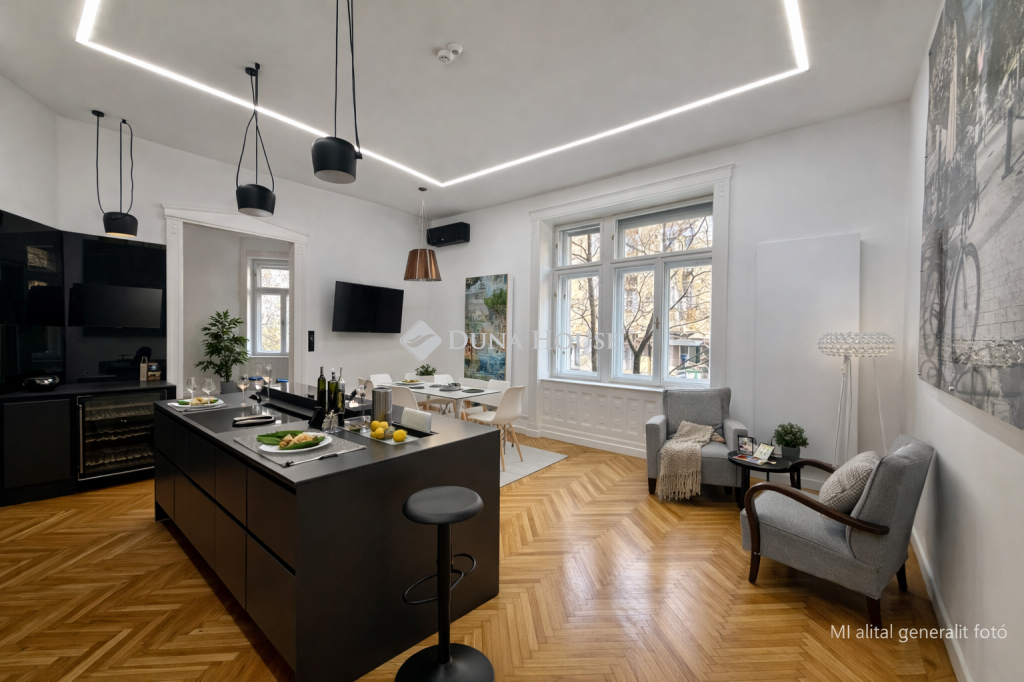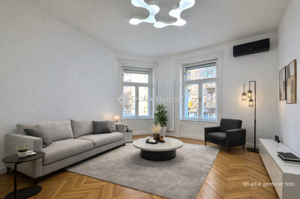 Tágas, polgári lakás a Lövőház utca sétáló részénA Lövőház utca sétáló része Buda egyik legismertebb és legkedveltebb városi környezete. Éttermek, kávézók, üzletek, a Mammut bevásárlóközpont és a Millenáris park néhány perc sétára találhatók mégis megmarad az utca sajátos, nyugodt hangulata.Ebben a környezetben kínálunk megvételre egy 100 m²-es, igényesen felújított lakást, amely egy liftes, téglaépítésű társasház félemeletén található. A 3 métert meghaladó belmagasság és a jól átgondolt térszervezés kellemes, tágas térérzetet ad az ingatlannak.A lakás elosztása praktikus és jól használható:32 m²-es amerikai konyhás nappali, prémium beépített gépekkelkét tágas hálószobaegy félszobadupla komfortos kialakításA műszaki tartalom és a felszereltség is igényes:légkondicionálásgázkazános fűtéstávirányítású alumínium redőnyökbiztonsági bejárati ajtófaliszéftávolról vezérelhető riasztó- és kamerarendszerigényes belsőépítészeti megoldásokParkolási lehetőség a közelben biztosított: a Millenáris Avantgarde Irodaházban őrzött teremgarázs hely bérelhető, 024 órás portaszolgálattal.Ha Buda egyik legjobb utcájában keres elegáns városi otthont, akkor ez a lakás egy olyan lehetőség, amit érdemes személyesen is megnézni. Hibás hirdetés bejelentése