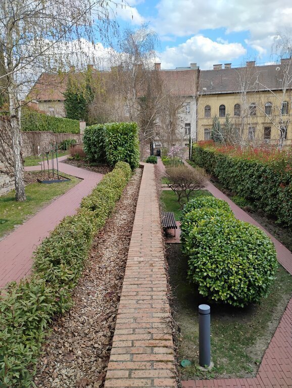A ház felső, Mecset utcai kapuján kilépve szinte azonnal egy gyönyörű, gondozott kertben találja magad, magnóliák, levendulák, rózsák mindenütt, a környék ligete tökéletes hely egy reggeli kávéhoz vagy egy esti lazuláshoz, mintha csak saját parkja lenne!
