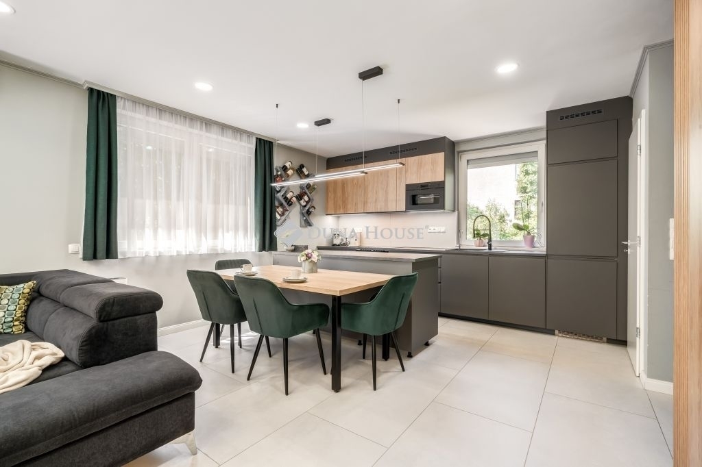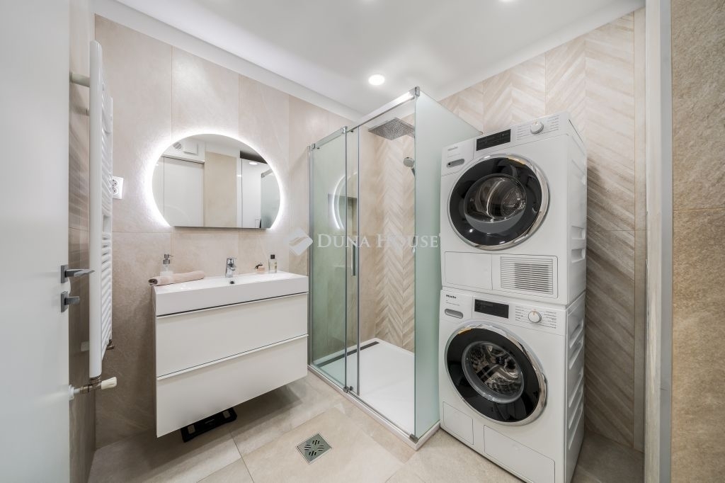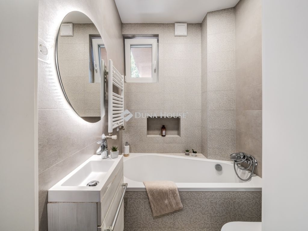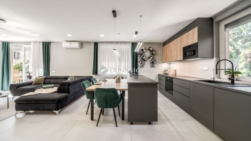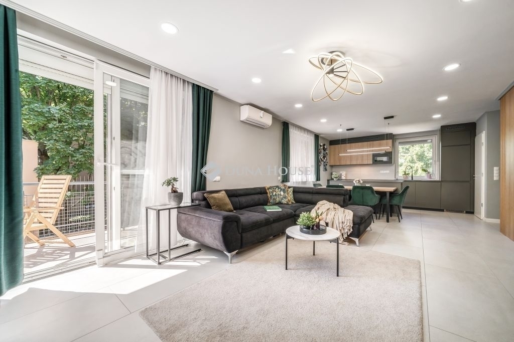 RÓZSADOMB szívében eladóvá vált prémium minőségű, 3 hálószobás, 2 fürdőszobás, dupla teraszos lakás!A II. kerület egyik legnyugodtabb, mégis kiválóan megközelíthető részén eladó ez a teljes körűen felújított, napfényben úszó, madárcsicsergős otthon, amelyet a nagy üvegfelületek és a körben áradó fény, valamint a dupla terasz tesz igazán különlegessé.A tágas, egybenyitott nappaliétkezőkonyha tér a lakás központi eleme, ahol a modern kialakítás, az elegáns részletek és a délkeleti tájolás egyedülálló életteret teremtenek. Két terasz kapcsolódik az ingatlanhoz, így a reggeli kávé vagy az esti pihenés mindig a természet közelségében telhet.A lakás három kényelmes szobát kínál: egy tágas szülői hálót, egy gyerekszobát és egy dolgozó- vagy vendégszobát.A két fürdőszoba, valamint a közlekedőkben kialakított, hatalmas, 8 folyóméteres gardróbfolyosó biztosítja a mindennapok kényelmét és rendezettségét.A lakáshoz tartozik egy külön, 5 nm-es tároló (4 M Ft értékben), valamint egy dupla garázs (30 M Ft értékben), amelyek tovább növelik az ingatlan értékét és komfortját. A lakásban található minőségi mobiliák (4 M Ft) egyedi megállapodás keretében elérhetők.Fontos információ: a lakás minimális rezsivel fenntartható (áram: 7 e Ft/hó, gáz: 12 e Ft/hó, víz: 5 e Ft/hó) a 2020-ban kialakított 25 cm-es hőszigetelésnek, valamint a tavaly beépített új Remeha kazánnak és kéménybélelésnek köszönhetően. A lakás generálfelújítást kapott 2022-ben.Ez az otthon nem csupán egy ingatlan, hanem a modern, kifinomult városi élet megtestesítője, ahol a fény, a tér és az elegancia tökéletes egységbe rendeződik.Várom megtisztelő megkeresésüket, akár hétvégén is!