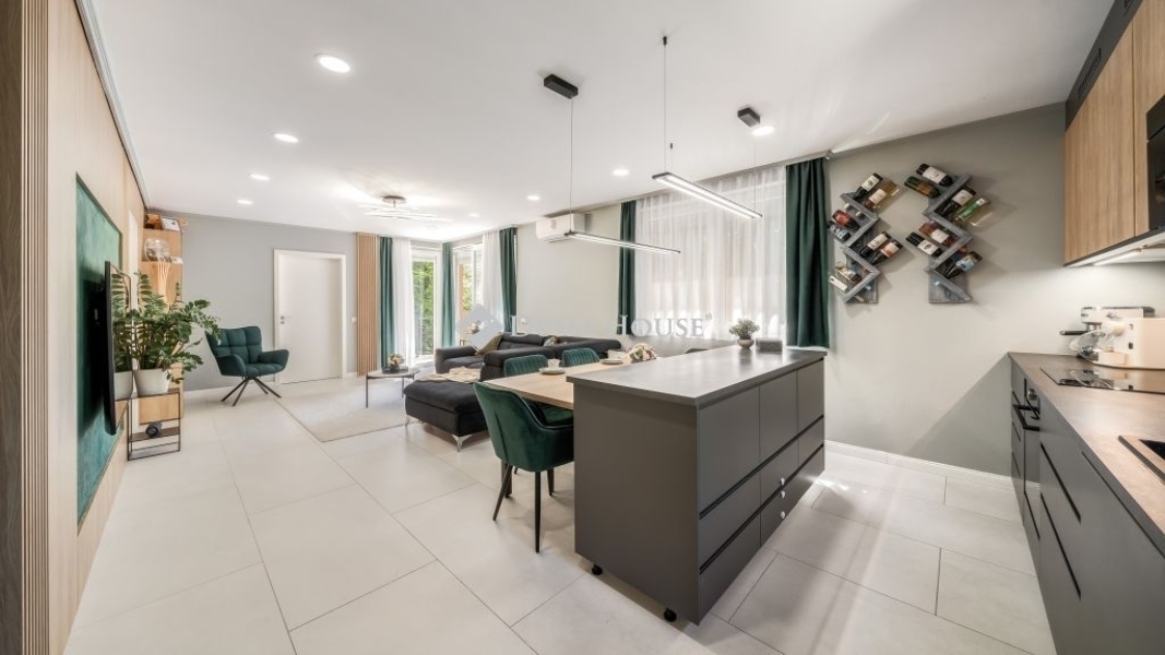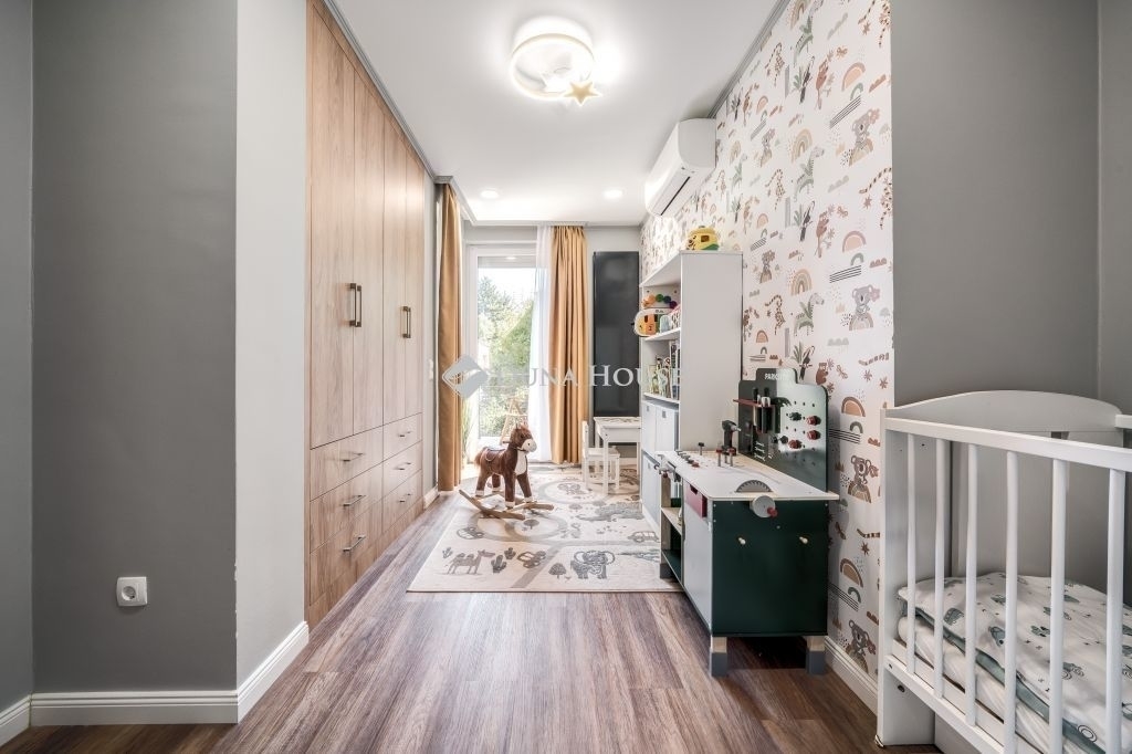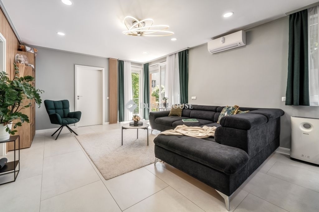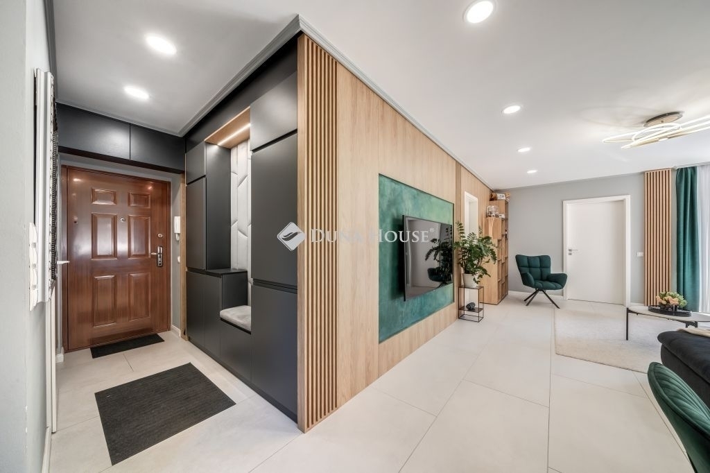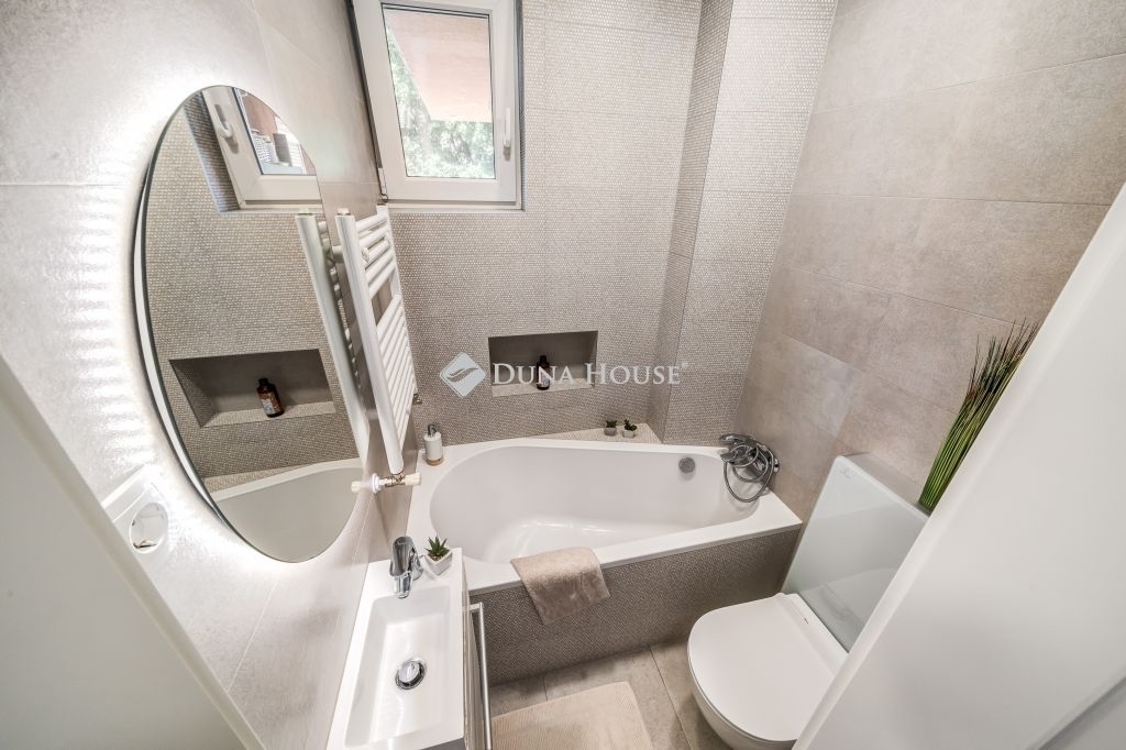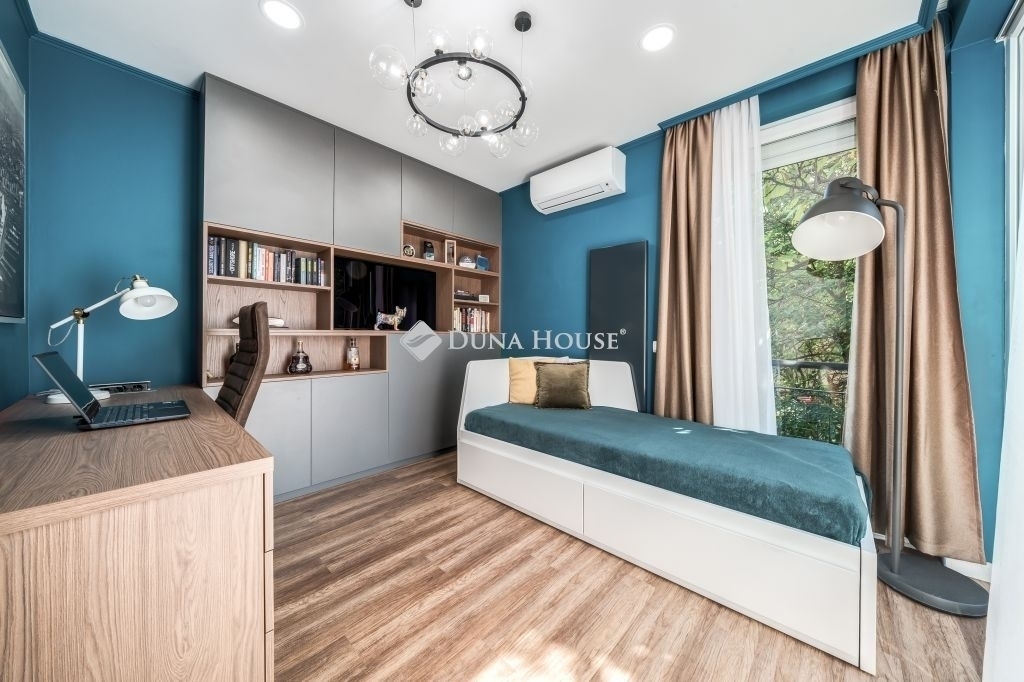 RÓZSADOMB szívében eladóvá vált prémium minőségű, 3 hálószobás, 2 fürdőszobás, dupla teraszos lakás!A II. kerület egyik legnyugodtabb, mégis kiválóan megközelíthető részén eladó ez a teljes körűen felújított, napfényben úszó, madárcsicsergős otthon, amelyet a nagy üvegfelületek és a körben áradó fény, valamint a dupla terasz tesz igazán különlegessé.A tágas, egybenyitott nappaliétkezőkonyha tér a lakás központi eleme, ahol a modern kialakítás, az elegáns részletek és a délkeleti tájolás egyedülálló életteret teremtenek. Két terasz kapcsolódik az ingatlanhoz, így a reggeli kávé vagy az esti pihenés mindig a természet közelségében telhet.A lakás három kényelmes szobát kínál: egy tágas szülői hálót, egy gyerekszobát és egy dolgozó- vagy vendégszobát.A két fürdőszoba, valamint a közlekedőkben kialakított, hatalmas, 8 folyóméteres gardróbfolyosó biztosítja a mindennapok kényelmét és rendezettségét.A lakáshoz tartozik egy külön, 5 nm-es tároló (4 M Ft értékben), valamint egy dupla garázs (30 M Ft értékben), amelyek tovább növelik az ingatlan értékét és komfortját. A lakásban található minőségi mobiliák (4 M Ft) egyedi megállapodás keretében elérhetők.Fontos információ: a lakás minimális rezsivel fenntartható (áram: 7 e Ft/hó, gáz: 12 e Ft/hó, víz: 5 e Ft/hó) a 2020-ban kialakított 25 cm-es hőszigetelésnek, valamint a tavaly beépített új Remeha kazánnak és kéménybélelésnek köszönhetően. A lakás generálfelújítást kapott 2022-ben.Ez az otthon nem csupán egy ingatlan, hanem a modern, kifinomult városi élet megtestesítője, ahol a fény, a tér és az elegancia tökéletes egységbe rendeződik.Várom megtisztelő megkeresésüket, akár hétvégén is!