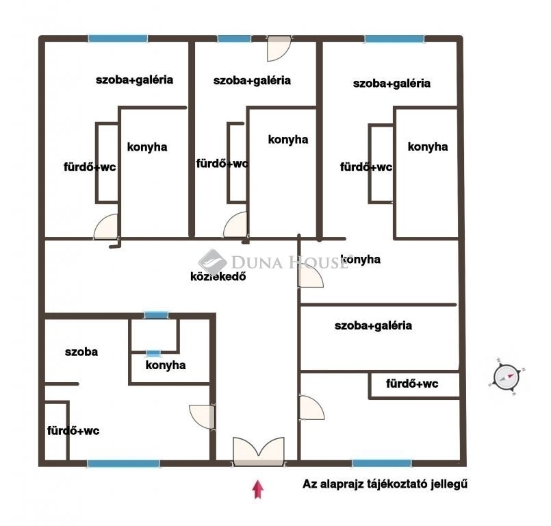 Az ingatlan különlegessége, hogy egy lakáson belül 5 önálló lakrész került kialakításra:- 4 galériázott szoba, saját konyhával, fürdőszobával + WC
