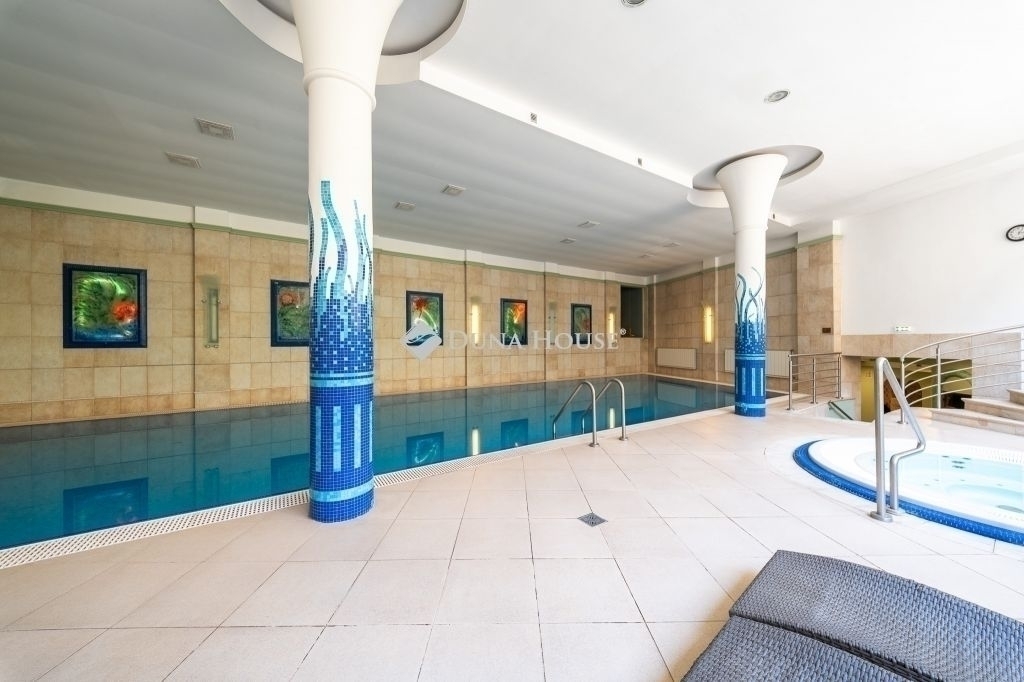 A lakás egy olyan zárt, magas presztízsű lakóparki környezetben helyezkedik el, amely a fővárosban is ritka színvonalat képvisel.A lakók rendelkezésére áll többek között:- 24 órás portaszolgálat- nagy kiterjedésű, ősfás, gondozott park- futópálya- kerti tó- grillezőhelyek- saját játszótér- sportolási lehetőségek- étterem- bortároló- különleges közösségi terekA wellness részleg a mindennapokat valóban magasabb szintre emeli:- úszómedence- szaunák- gőzfürdő- fitneszterem- sószoba- squash pálya- szolárium- masszázs lehetőség