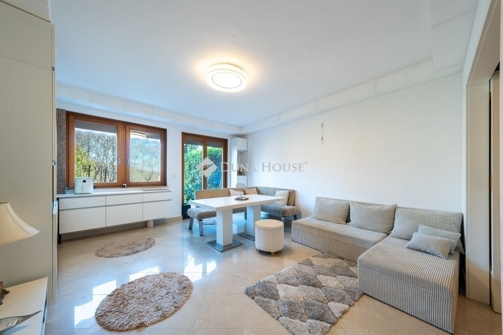 Az ingatlan belső erősségei- A lakás világos, harmonikus, jól szervezett terekkel rendelkezik, elrendezése kényelmes és a mindennapi használat szempontjából is kiválóan átgondolt.- A nappali közvetlen kapcsolatban áll a nagy méretű terasszal és a kerttel, ami különleges térélményt ad az ingatlannak. Ez a kapcsolódás nemcsak esztétikai érték, hanem életmódbeli előny is: reggeli kávé a zöldben, nyugodt esti kikapcsolódás, csendes privát kültéri tér a városon belül.-