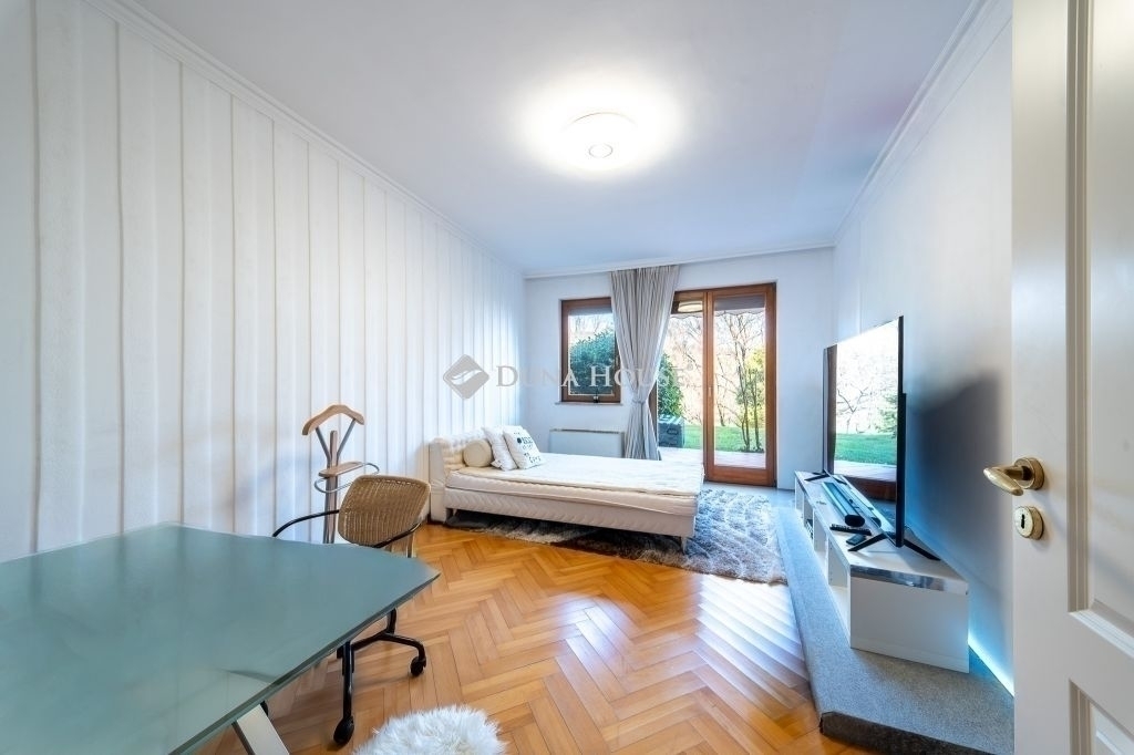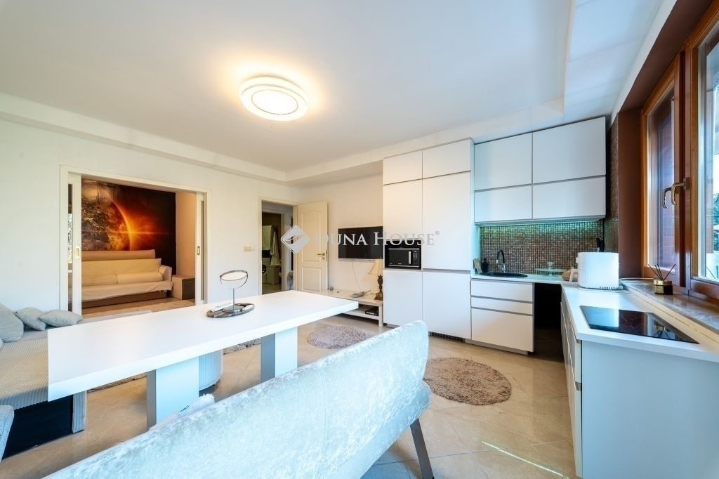Az ingatlan jelenlegi kialakítása korszerű és élhető, ugyanakkor igény esetén a belső struktúra részben újragondolható, így például a konyhai elrendezés is visszaalakítható külön konyhás megoldásra.A lakás:- világos,- csendes,- zöldre néző,- azonnal költözhető állapotú,- valódi kertkapcsolatos adottsággal rendelkezik.Prémium műszaki tartalomAz ingatlan műszaki színvonala is illeszkedik a kategóriához:- fan-coil rendszerű hűtés-fűtés- padlófűtés- klímaberendezés- minőségi, gépesített konyha- korszerű, energiatudatos megoldások- elektromos redőnyök