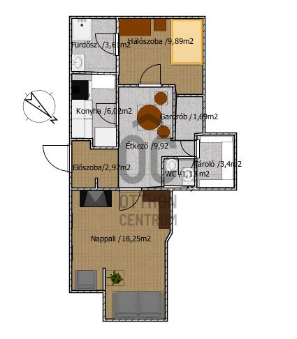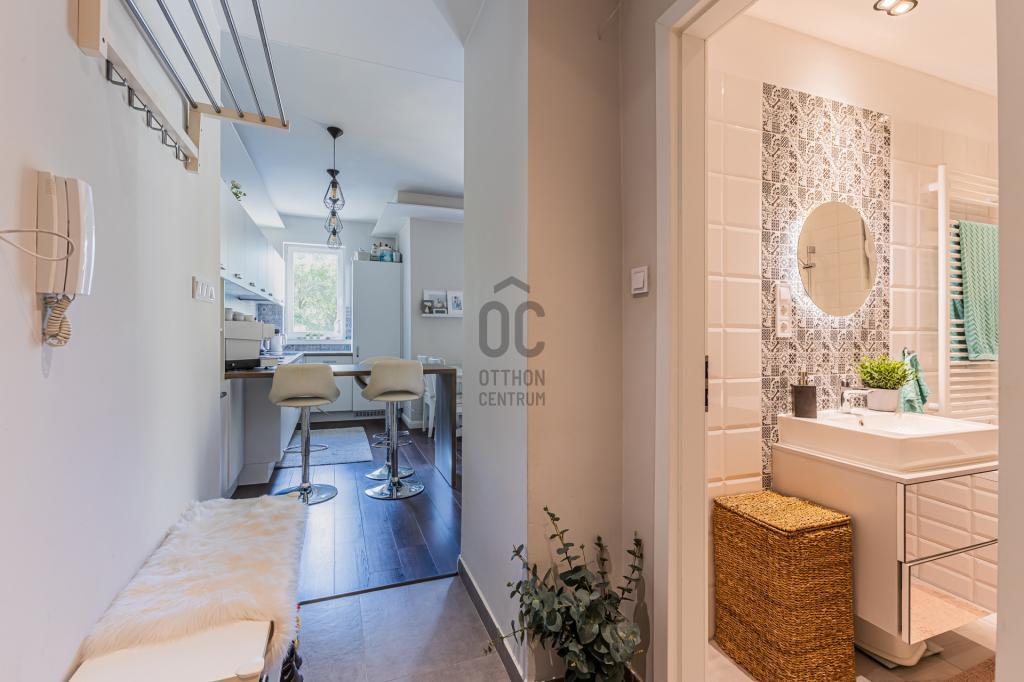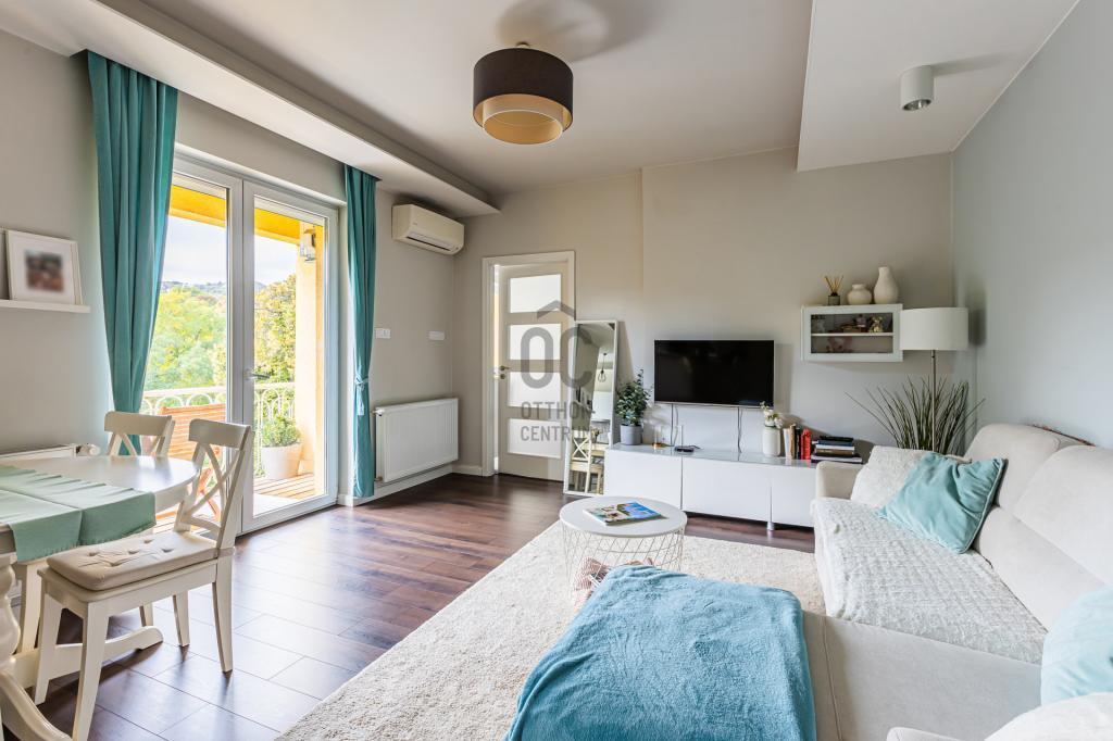 A lakás rendkívül világos, kiváló elrendezésű. Amerikai konyhás nappalival rendelkezik, amelyből egy 5mm-es terasz nyílik. Hálószobája nagy méretű és jól pakolható.