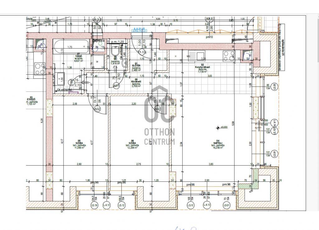 amely áll: nappali 22.29 m2, szoba 8.36m2, szoba 12.02m2, fürdő 5.31m2, fürdő 7.18 m2 + terasz 45 m2.