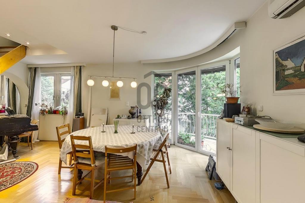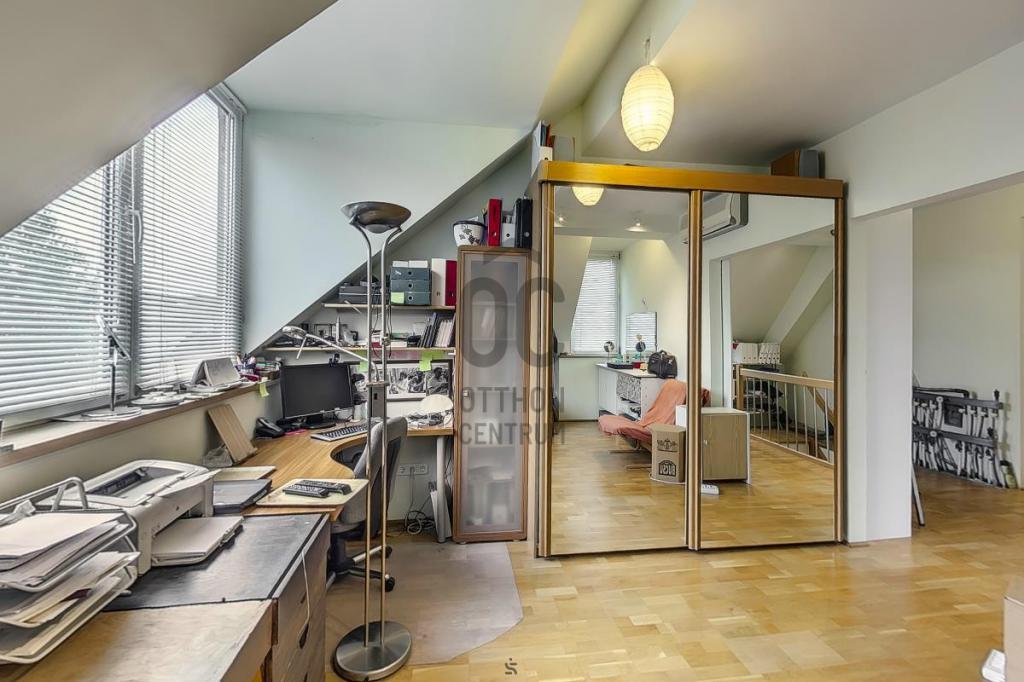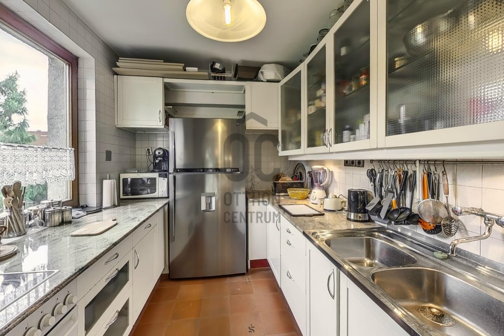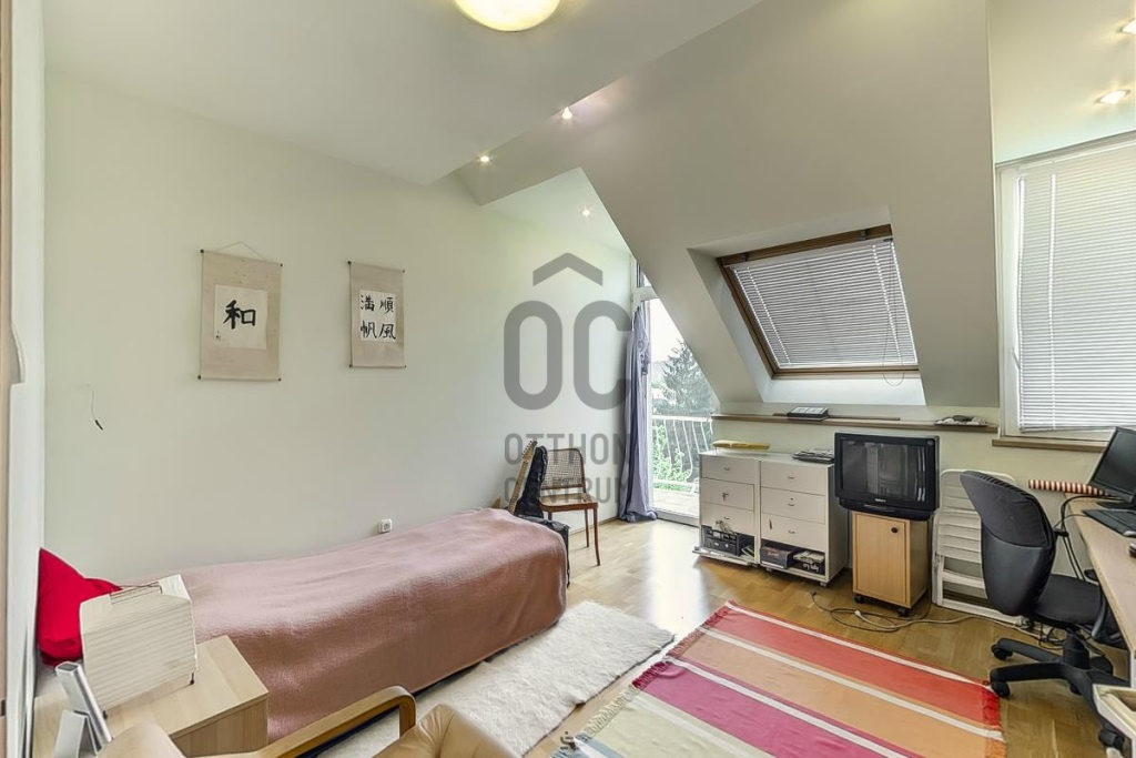 II. kerületben Törökvészen, 1989-ben épült, gondozott kertben álló, folyamatosan karbantartott, jó állapotú, 4 lakásos ház első, legfelső emeletén, nappali + 4 hálószobás, beköltözhető állapotú, az elmúlt években többször felújított, átépített, de esztétikai csinosítást igénylő, több erkélyes, napos, világos, tágas lakás,garázzsal, 1 felszíni parkolóhellyel és nagy tárolóval eladó. A közelben található a Móricz Zsigmond Gimnázium, a Szabó Lőrinc Kéttannyelvű Általános Iskola és Gimnázium, több óvoda és a Rózsakert bevásárlóközpont. Gépkocsival 10-15 perc alatt megközelíthető a Margit híd és az Árpád híd, a 91-es, 291-es buszmegállói három perc sétával elérhető. Hibás hirdetés bejelentése