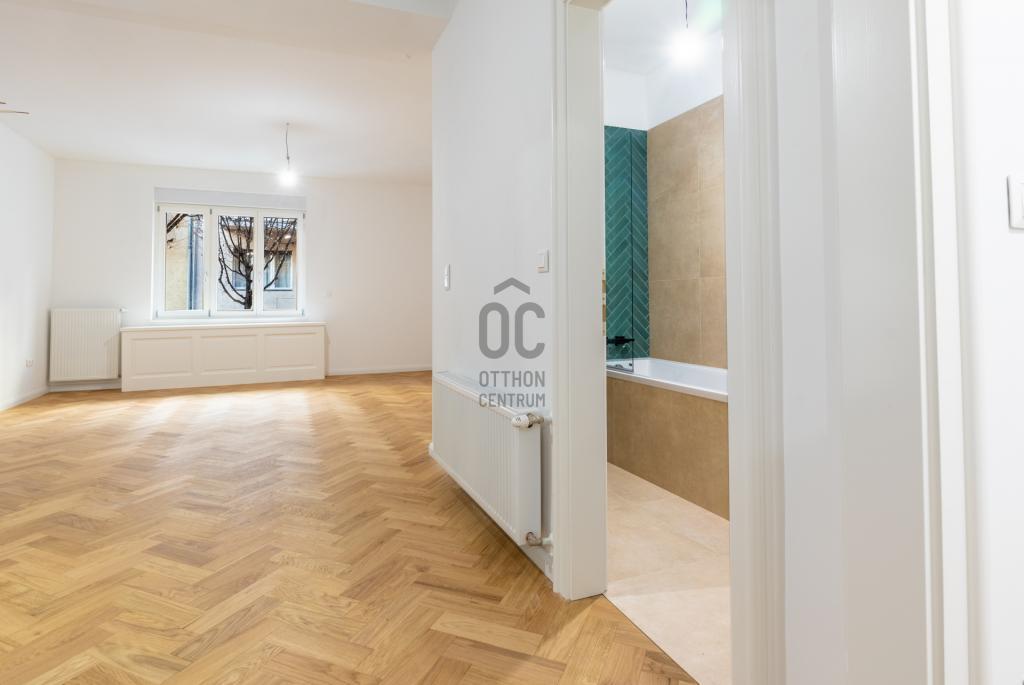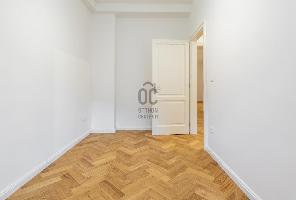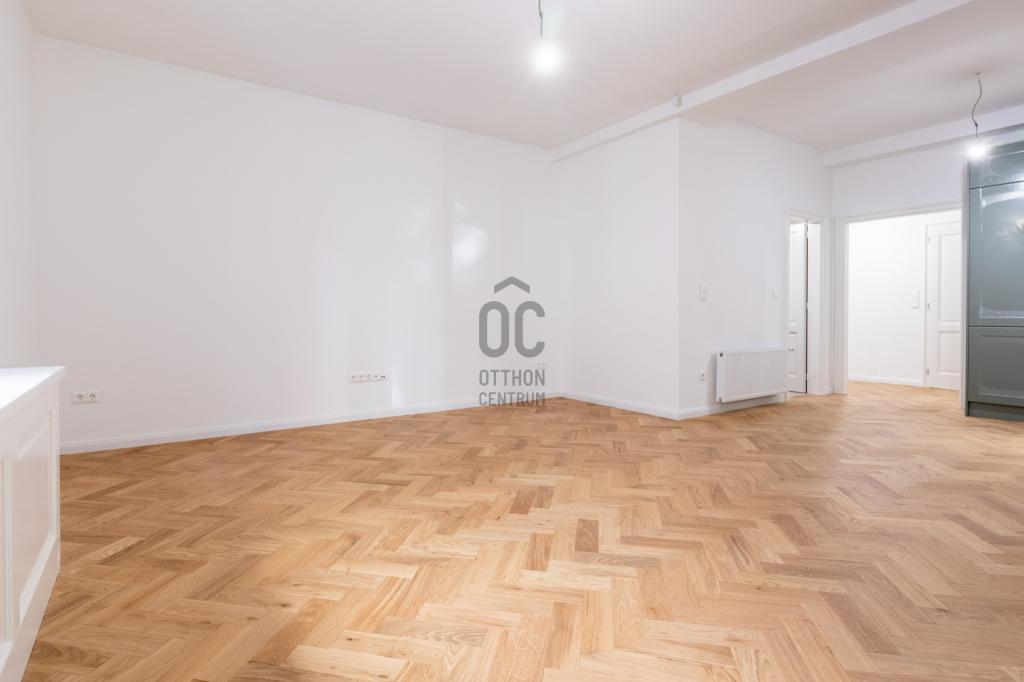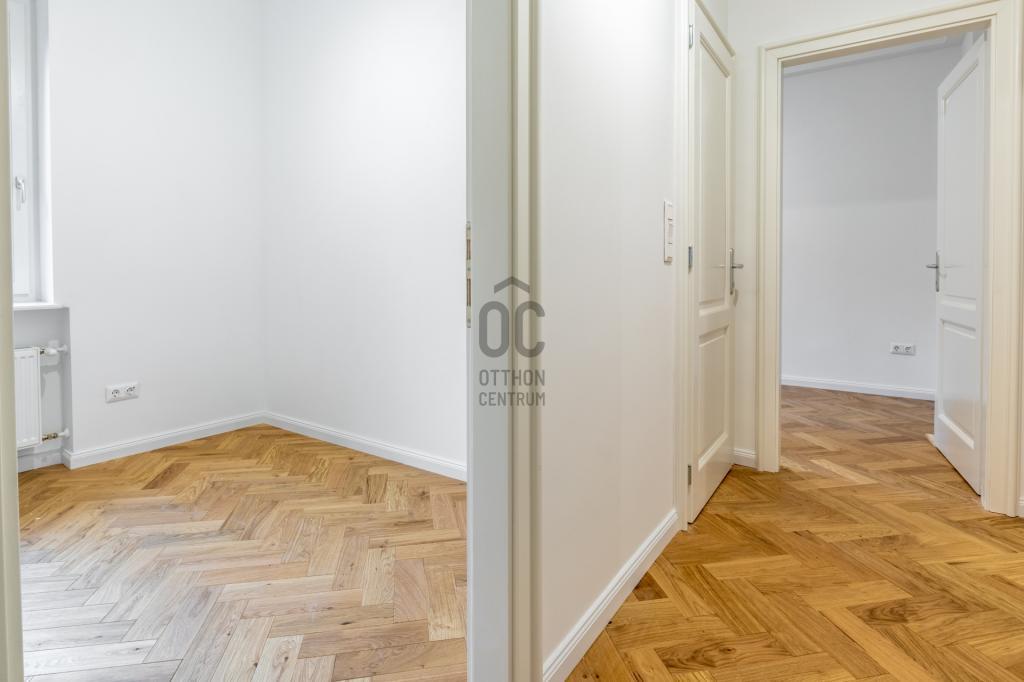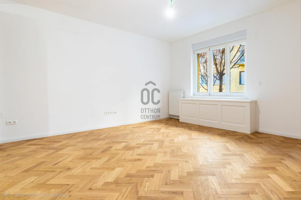 A szobák vadonatúj, valódi tölgyfa parkettával burkoltak, a konyha, a fürdőszoba és a wc minőségi járólapot kapott.