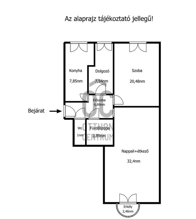 A lakás – jól strukturált, élhető terekkel rendelkezik. A helyiségek külön bejáratúak, az erkélyes (2,46m2) nappali utcai nézetű.