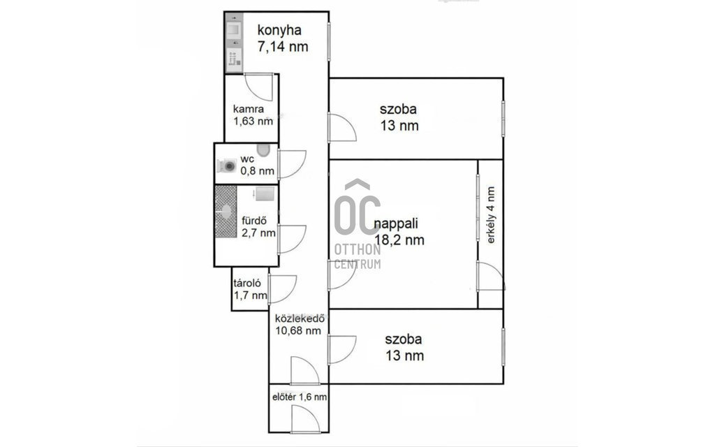 70 nm lakótér + 4 nm erkély