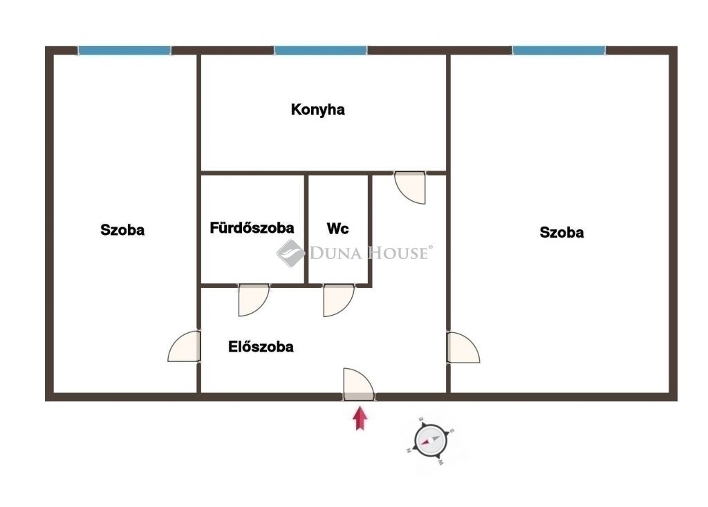 Az ingatlanban két különnyíló, tágas szoba, egy ablakos, étkezéshez is elegendő teret kínáló konyha, egy fürdőszoba, külön wc, és egy előszoba helyiségek kaptak helyet. Elrendezése kiváló, a két tágas szoba a lakás két ellenkező végén található, így áthallás nincsen közöttük, ennek köszönhetően például szobánként is bérbe adható, illetve két különböző napirendet követő családtag számára is ideális.