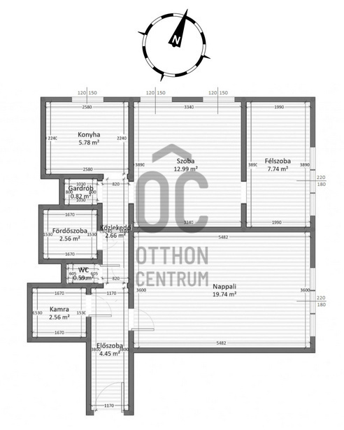-A 3 szoba mellett egy kényelmes elrendezésű konyha is található, amelyben egy kis étkezőasztalnak is marad hely.