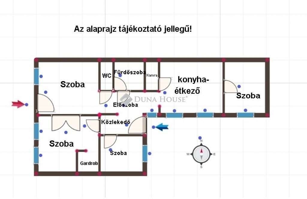 107 m² alapterület, 2+2 félszoba, konyha-ézkező egyben, tágas terek.