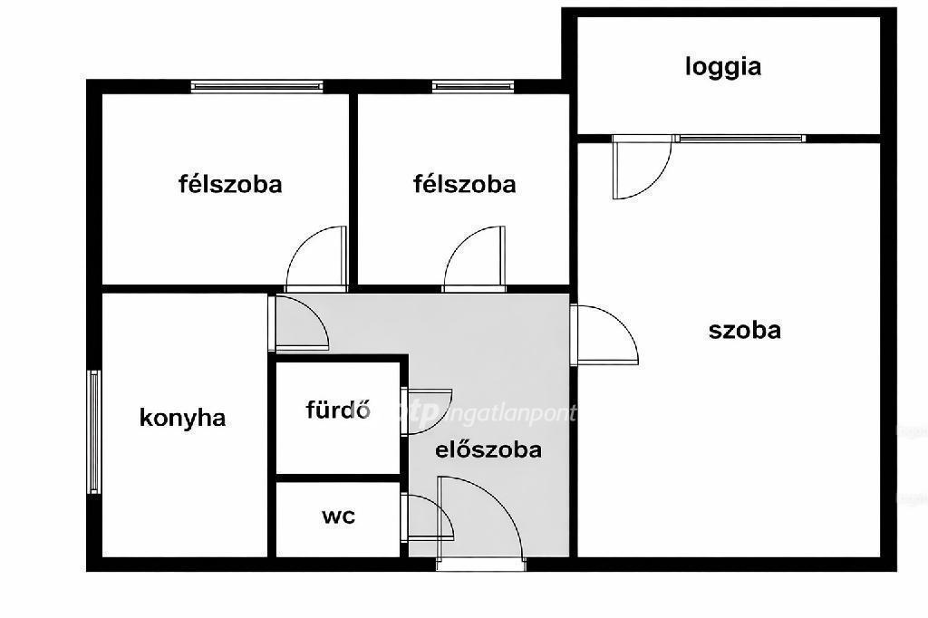 Elosztása: nappali, 3 hálószoba, gépesített konyha, 2 fürdőszoba (kád + zuhany). A hálószobákhoz erkély vagy loggia tartozik.