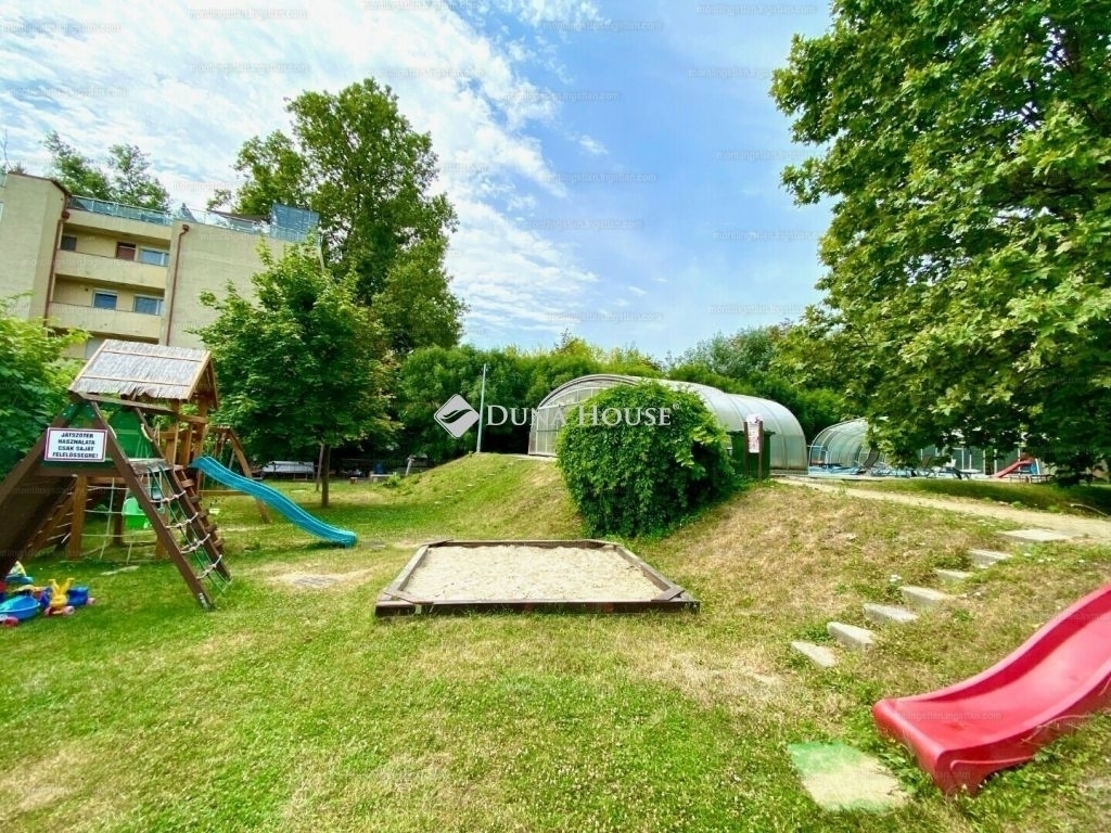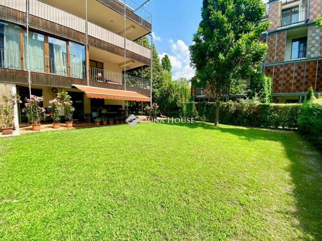 Az ingatlan egy rendezett, liftes, 0-24 órás portaszolgálattal működő, medencés lakópark földszintjén található, ahol a lakók kényelmét gondozott kert, játszótér és közös használatú medence biztosítja.