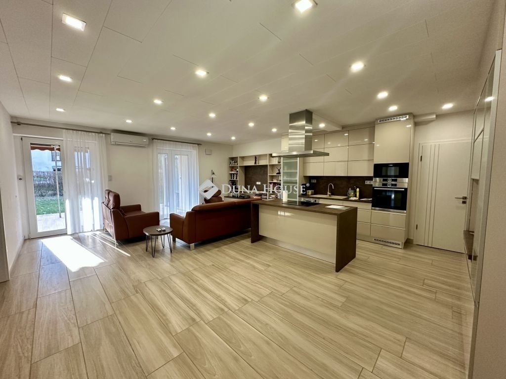 A lakás nettó 98 m² alapterületű, amelyhez egy 60 m²-es terasz és egy 107 m²-es kizárólagos használatú kert tartozik. A kert öntözőrendszerrel felszerelt, így ideális helyszín pihenésre, családi vagy baráti összejövetelekre. A teraszon kialakított kültéri konyha még különlegesebbé teszi a szabadtéri életet.