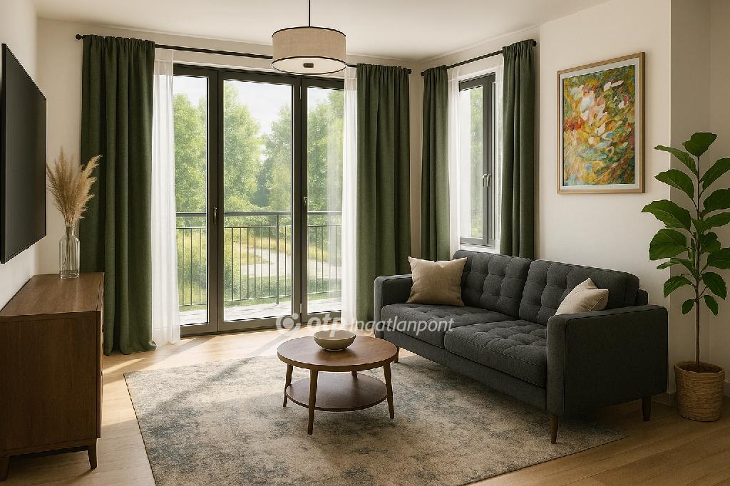 Ez a lakás tökéletes választás mindazoknak, akik zöld, csendes környezetre vágynak, mégis elérhető távolságra szeretnének maradni a belvárostól.