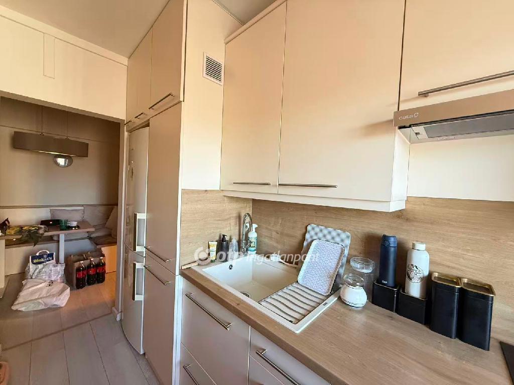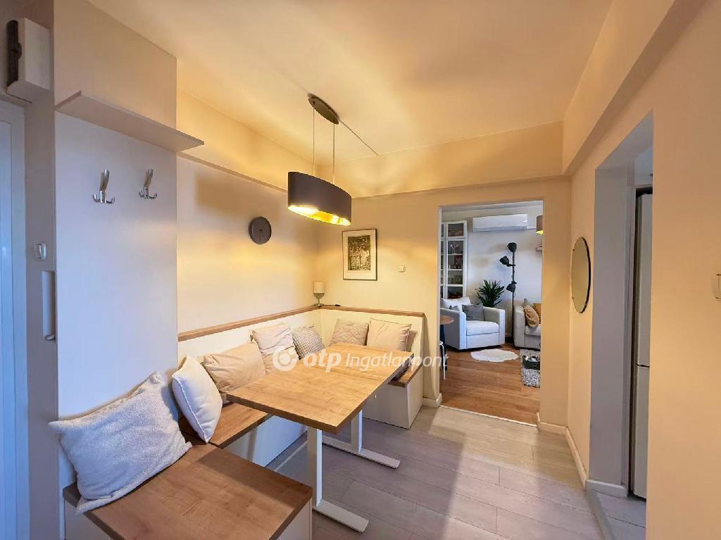 The apartment is fully equipped with a built-in kitchen, air conditioning, and shutters. Heating is provided by district heating, and the monthly costs are very low thanks to two individual water meters and a 13,000 HUF common charge.