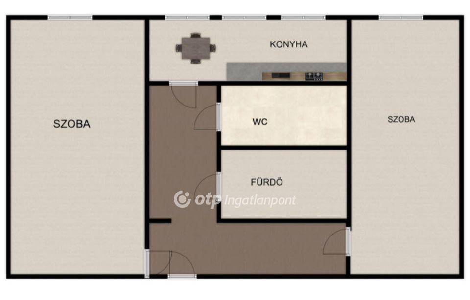 két különnyíló szoba, ideális elrendezés pároknak vagy kisgyermekes családoknak