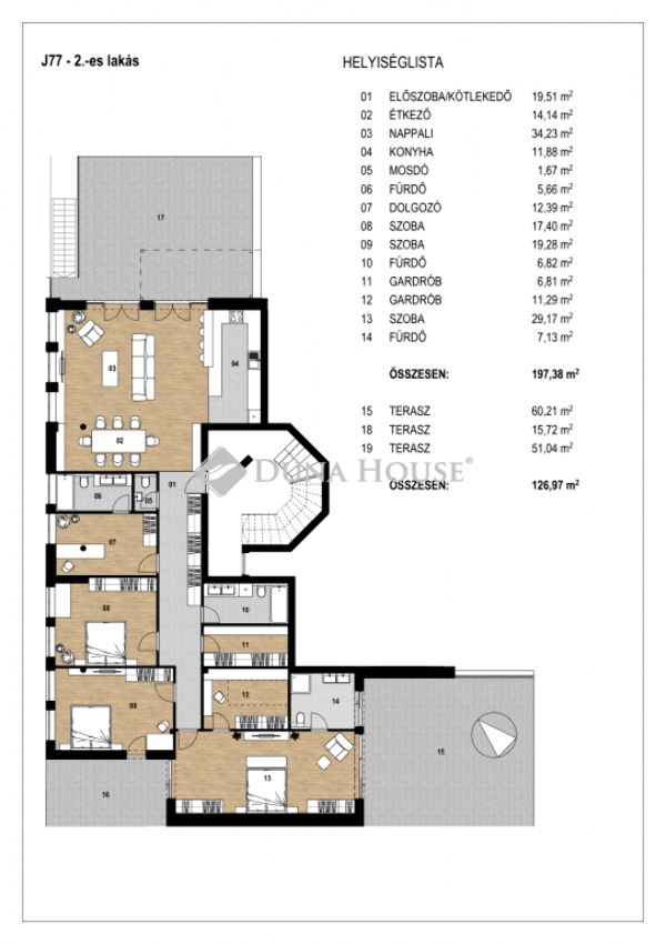 -Alapterület: 240 m² + 60 m² panorámaterasz (közvetlenül a nappali/konyhából nyílik).