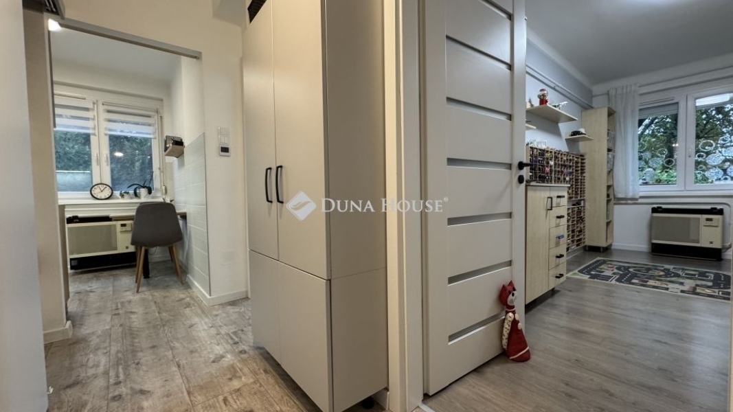 Eladó, 47m²-es 2 szobás, lakás a Folyondár utcában!Akár teljes bútorzattal is megvásárolható!!Az ingatlan 2021-ben teljes körű felújításon esett át, amelynek során minden nyílászáró, burkolat és gépészet megújult. A 47 m²-es, keleti tájolású lakás a földszinten helyezkedik el, és a lépcsőházból megközelíthető, osztatlan közös kertrésszel rendelkezik, melyet szokásjog alapján saját használatban van. az aktuális tulajdonos által.Főbb jellemzők:Alapterület: 47 m²Elrendezés: nappali, konyha, hálószobaFűtés: padlófűtés, konvektorKlíma: vanMinőségi beépített bútorok, új konyhabútorEgyedi, modern belső megoldásokPrivát felszíni parkoló!!Rezsi:Közös költség: 20 000 Ft/hó (kertész, felújítási alap, kerti víz)Gáz átalány: 6 800 Ft/hóVillany: 9 000 Ft/hóVíz: 6 000 Ft/2 hóKörnyék, közlekedés:A Folyondár utca egy csendes, zöldövezeti részen található, körbezárt lakóparkban, mégis kiváló közlekedési adottságokkal. A 65-ös és 165-ös buszmegálló néhány perc sétára elérhető, a közeli Kolosy tértől pedig villamosokkal gyorsan megközelíthető a belváros. A mindennapi kényelemről a közelben található Újlaki iskola, bolt, a híres Daubner cukrászda, az uszoda, valamint a GOBUDA bevásárlóközpont gondoskodnak.Az ingatlan ideális választás pároknak, fiataloknak vagy befektetőknek egyaránt, hiszen a környék keresett és kiadhatósága is kiváló.
