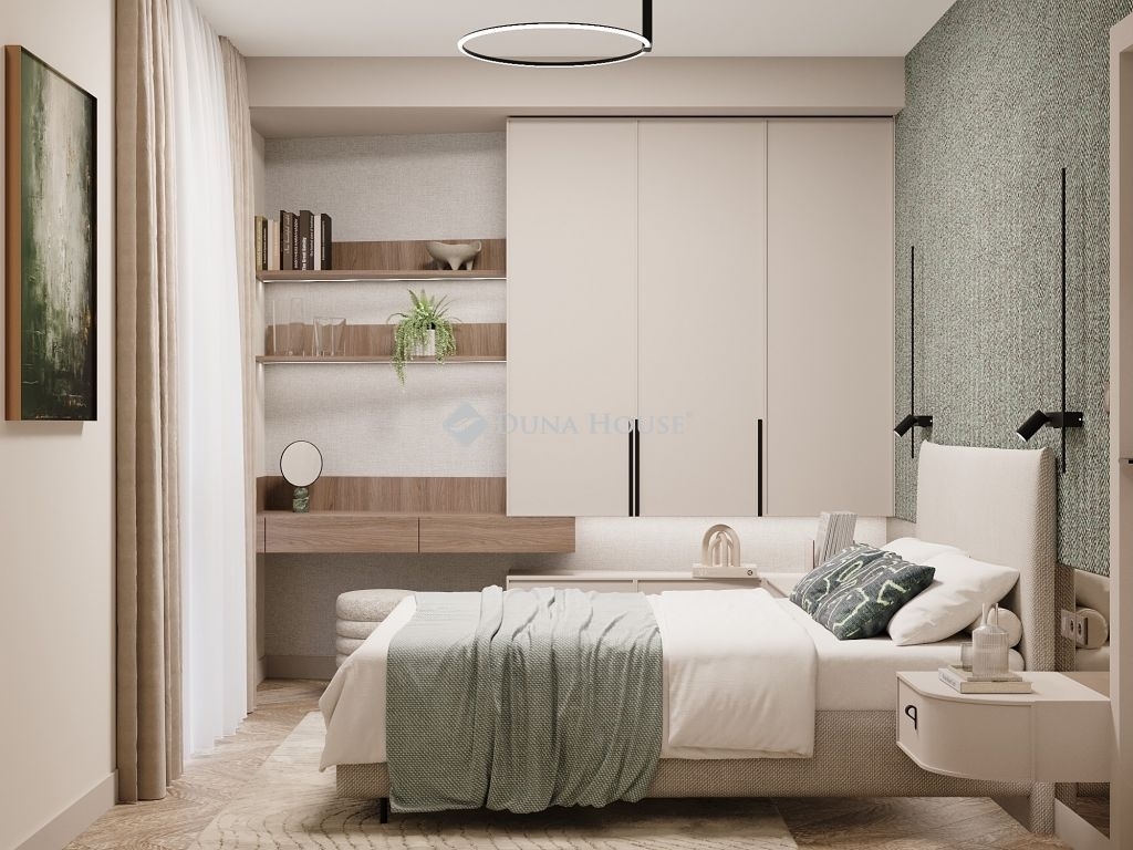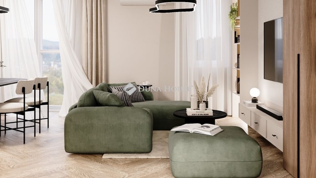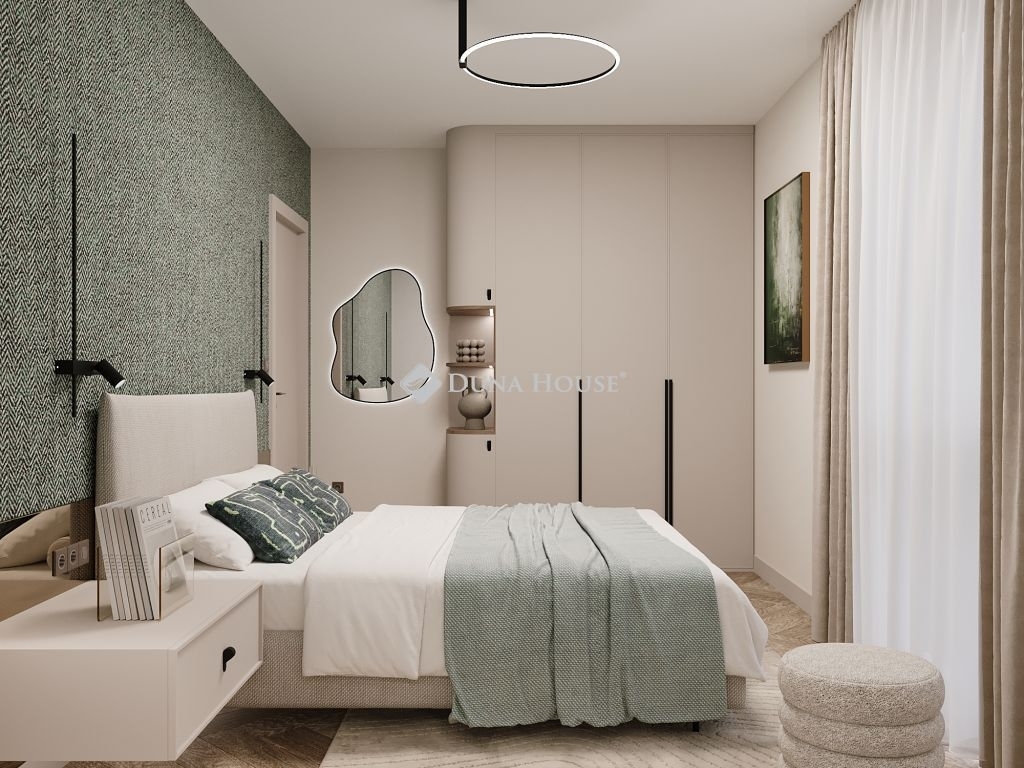 BEVEZETŐ ÁRON DECEMBER15-IG // AJÁNDÉK GÉPESÍTETT KONYHA BOSCH / AEG PRÉMIUM GÉPEKKEL!Kivételes lehetőség a III. kerület egyik legkedveltebb hegyvidéki részén, Testvérhegyen, kis forgalmú, csendes utcában, elegáns villák és lakóházak szomszédságában!Eladó első emeleti, amerikai konyhás nappali + egy hálószobás, lakberendező tervei alapján megvalósuló design lakás egy 2006-ban magas minőségben megépült, majd 2025-ben teljeskörűen újjáépített ENERGIATAKARÉKOS, LIFTES társasházban, amely egy parkosított kerttel körülvett, mindössze 4 lakásos épület.Főbb jellemzők:- Belsőépítész lakberendező tervei alapján megvalósuló design lakás- Lakás mérete: 61 m² + 2 erkély összesen 12,8 m²- Elosztás: amerikai konyhás nappali + egy hálószoba, mindkét helyiség erkélykapcsolatos- Panorámás kilátás, tágas, világos terek, rendkívül praktikus elrendezés- Hőszivattyús mennyezeti hűtés-fűtés + padlófűtés a modern kényelemért- Prémium minőségű burkolatok, gépesített konyha az árban- Teremgarázs beállóhely (+9M Ft) és saját tároló (1M Ft/nm) megvásárolandókIgény esetén a képeken látható berendezési tárgyakkal kerül átadásra az ingatlan (az illusztráció valós bútorok, berendezési tárgyak felhasználásával készült el).Átadás: 2026. I. negyedévLokáció minden, ami fontos, karnyújtásnyira:GoBuda Bevásárlóközpont, Tesco és más üzletek néhány percreTömegközlekedés könnyen elérhetőÓvoda, iskola, gyógyszertár, nemzetközi iskola a közelbenTúraútvonalak, zöldterületek a természet kedvelőinekBelváros autóval 15-20 perc alatt elérhetőEz a lakás ideális választás lehet pároknak, egyedülállóknak vagy akár befektetőknek, akik egy exkluzív, nyugodt környezetben, mégis kiváló infrastruktúrával rendelkező lokációban keresnek új otthont vagy értékálló ingatlant.Ne hagyja ki! További információért és megtekintésért várom hívását!
