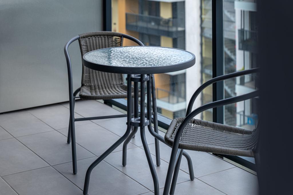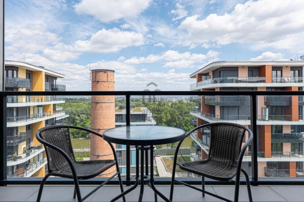 A tágas teraszról megpillanthatjuk a Dunát a zöldellő Hajógyári-szigetet és egyben a Waterfront city egyik jelképének számító autentikus védett kéménykürtőjét!
