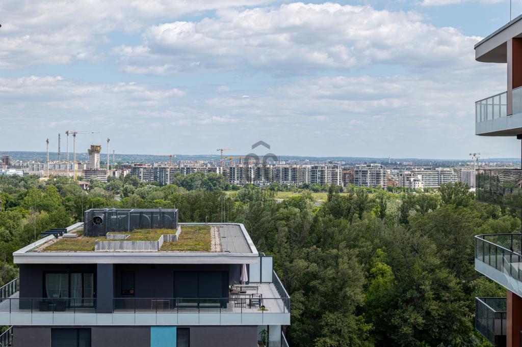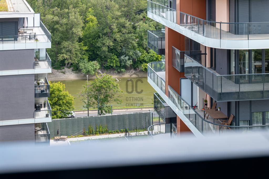 A kilátás hangulata egyezik a lakópark milliőjével, modern épületek, zöld környezet, a Duna habjai és a múlt egy kis darabkája igényes modern köntösbe bújtatva.