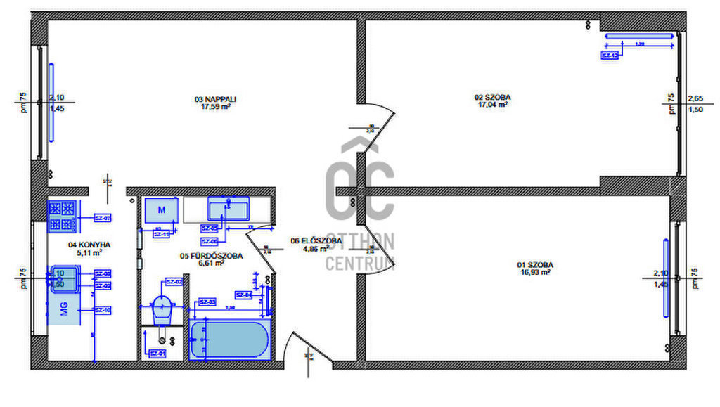 Két tájolású, rendkívül világos lakószobák