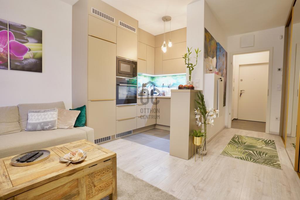 A tökéletesen megtervezett, napfényes, erkélyes stúdiólakás a III. kerületi Waterfront City-ben található — ahol a modern otthonélmény és a prémium design találkozik.