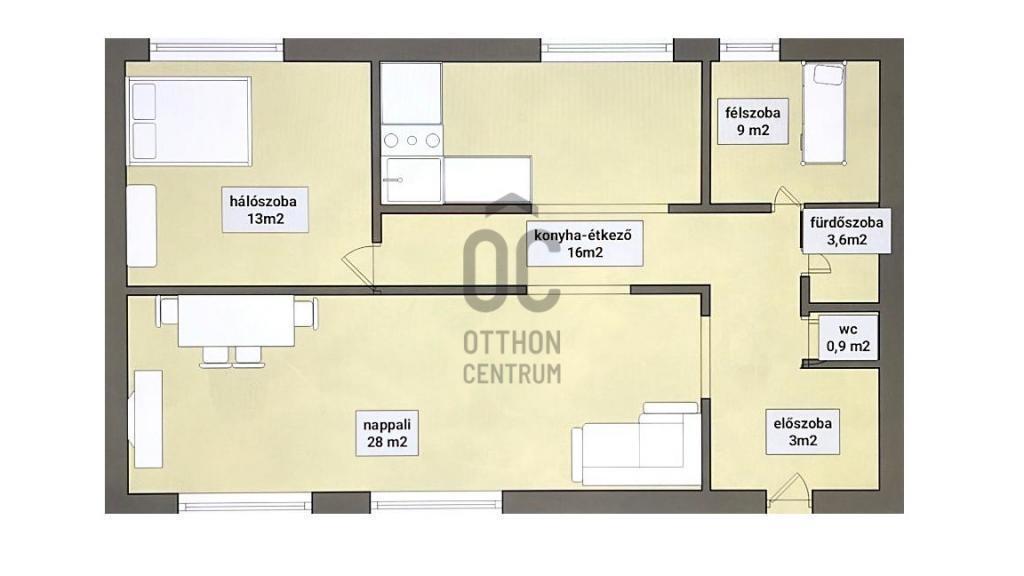 A lakás elrendezése ideális: a nagy nappali-étkező központi szerepet kap, amely a belső parkra néz, így világos és meghitt. A két különnyíló hálószoba a családtagoknak vagy akár dolgozószobának is kényelmet kínál.