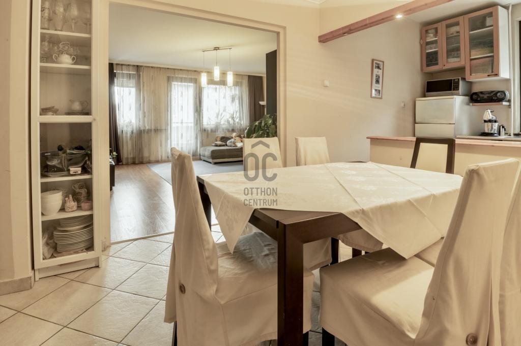 A gardróbszoba és a beépített szekrények bőséges tárolóhelyet biztosítanak, a külön fürdő és WC praktikus megoldás a mindennapokban.