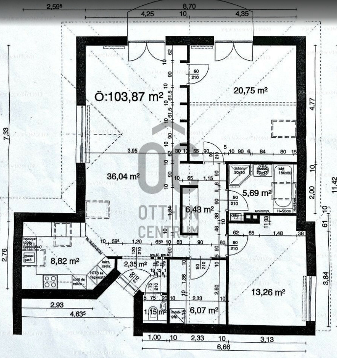 Amerikai konyhás nappali + 2 tágas hálószoba