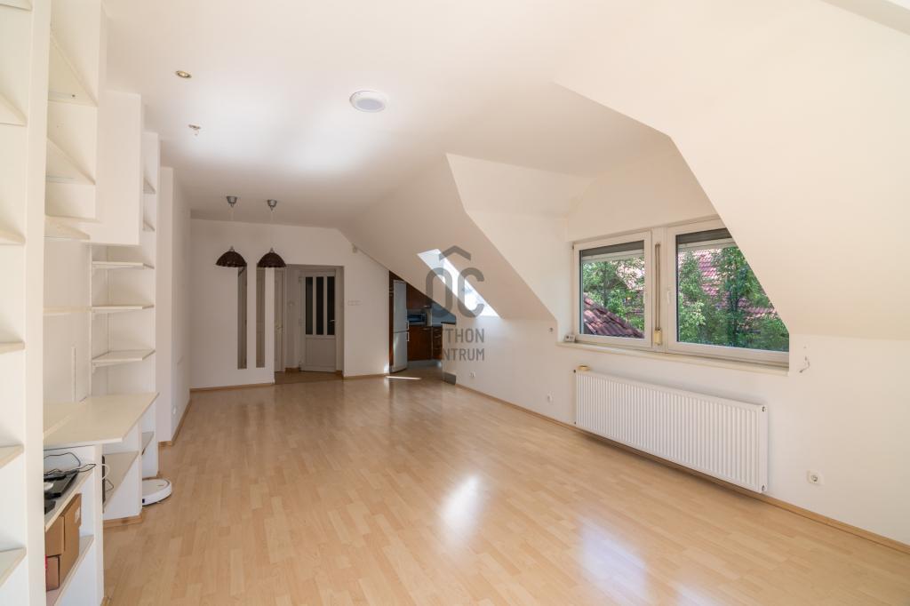 Az ingatlan egy 2004-ben épült, mindössze két szintes társasház első emeletén helyezkedik el, déli-keleti tájolással, utcai panorámával, valamint saját, 10 m²-es terasszal, ahonnan ősfás környezetre és rendezett kertre nyílik kilátás. A lakótér tágas nappaliból, külön konyha-étkezőből, két hálószobából, külön WC-ből, fürdőszobából, valamint praktikus gardrób- és közlekedő helyiségekből áll – tökéletes családoknak vagy pároknak, akik szeretik a természetközeli életet, kompromisszumok nélkül.