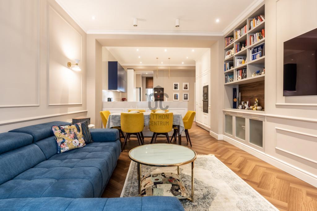 124 m²-es, belső kétszintes lakás eladó háromlakásos épületben, amerikai konyhás nappalival és 3 hálószobával, 2 fürdőszobával és saját 200 m2 kerttel, több autóbeállási lehetőséggel, zöld és csendes környezetben.