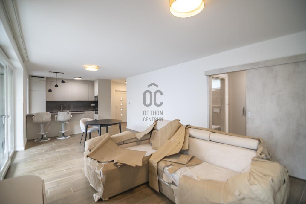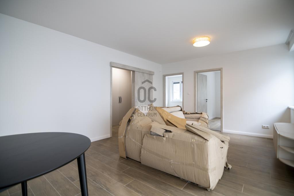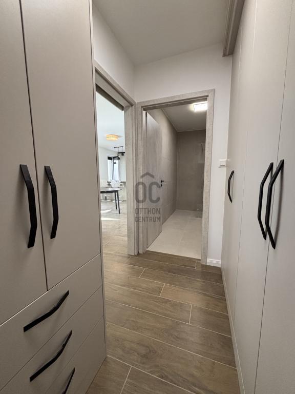 A belső tér tágas nappali–étkező–konyha együttesből, két hálószobából, külön fürdőből és mellékhelyiségből áll. A konyha vadonatúj, beépített konyhabútorral és konyhaszigettel rendelkezik, a gardróbok szintén beépítettek.