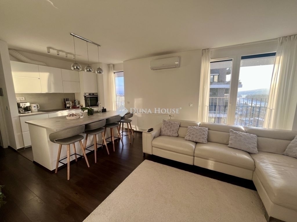 Eladó örökpanorámás, prémium felszereltségű, magasemeleti lakás a Metrodom Panorámában.A XIII. és IV. kerület határán, kiváló közlekedéssel és infrastruktúrával ellátott környezetben, a Metrodom Panoráma ikonikus lakóparkjában eladó egy 86 m²-es, amerikai konyhás + 3 hálószobás, két fürdőszobás, teljesen berendezett és gépesített, örökpanorámás lakás, a 13. emeleten.A tágas, 36 m²-es teraszról páratlan kilátás nyílik a Dunára és a Budai-hegyekre, ahol tájolásnak köszönhetően a napfelkeltétől a naplementéig élvezhető a város felett elterülő látvány. Felszereltség és műszaki tartalom:Okosotthon-rendszerWifi-s klímaberendezés minden helyiségbenElektromos alumínium redőnyök (applikációval és távirányítóval vezérelhetők)Szúnyoghálók minden ablakonBeépített konyhai gépek: Bosch, LiebherrA szülői hálóhoz saját zuhanyzós fürdőszoba tartozik, a másik fürdő kádas, mosó- és szárítógéppel felszerelt.Minőségi szaniterek: Wellis, Ravak, BlancoEgyedi mérőórák, házközponti fűtésTársasház és környezet:A Metrodom Panoráma négy 17 emeletes tornyából áll, modern és igényes közösségi terekkel, 24 órás portaszolgálattal és tiszta, rendezett lakókörnyezettel.A lakóparkban három játszótér található, különböző korosztályok számára, így családoknak is ideális.A földszinten éjjel-nappal nyitva tartó gyógyszertár működik, a közelben pedig számos bevásárlóhely, szolgáltatás és sportolási lehetőség elérhető.Közlekedés:Villamosok: 12, 14Metró: M3Busz: 196A Népsziget és a Római-part a közeli Északi összekötő hídon keresztül gyalogosan és kerékpárral is megközelíthető.ParkolásA lakáshoz tartozik egy 1. szinti teremgarázs-beálló a toronylift közvetlen közelében, amely 8.000.000 Ft-ért eladó, és a lakással együtt vásárolható meg.További információkAz ingatlan tehermentesAzonnal költözhetőBefektetés esetén pár hónapos visszabérlés megoldható. Hibás hirdetés bejelentése