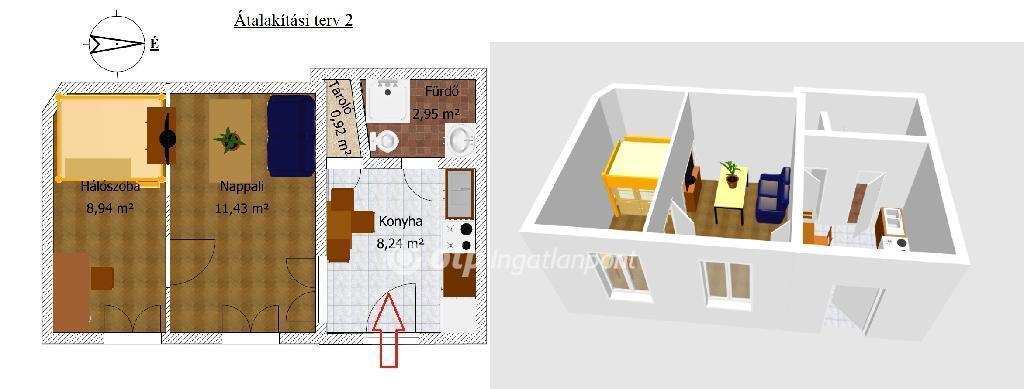 Óriási előnye, hogy a tágas, 2 ablakos szobában könnyedén kialakítható egy különnyíló hálószoba. Így teljesen önálló életterekre osztható, nagy méretű konyhával, tárolóval rendelkező 1,5 szobás lakást kaphatunk, megfizethető áron!