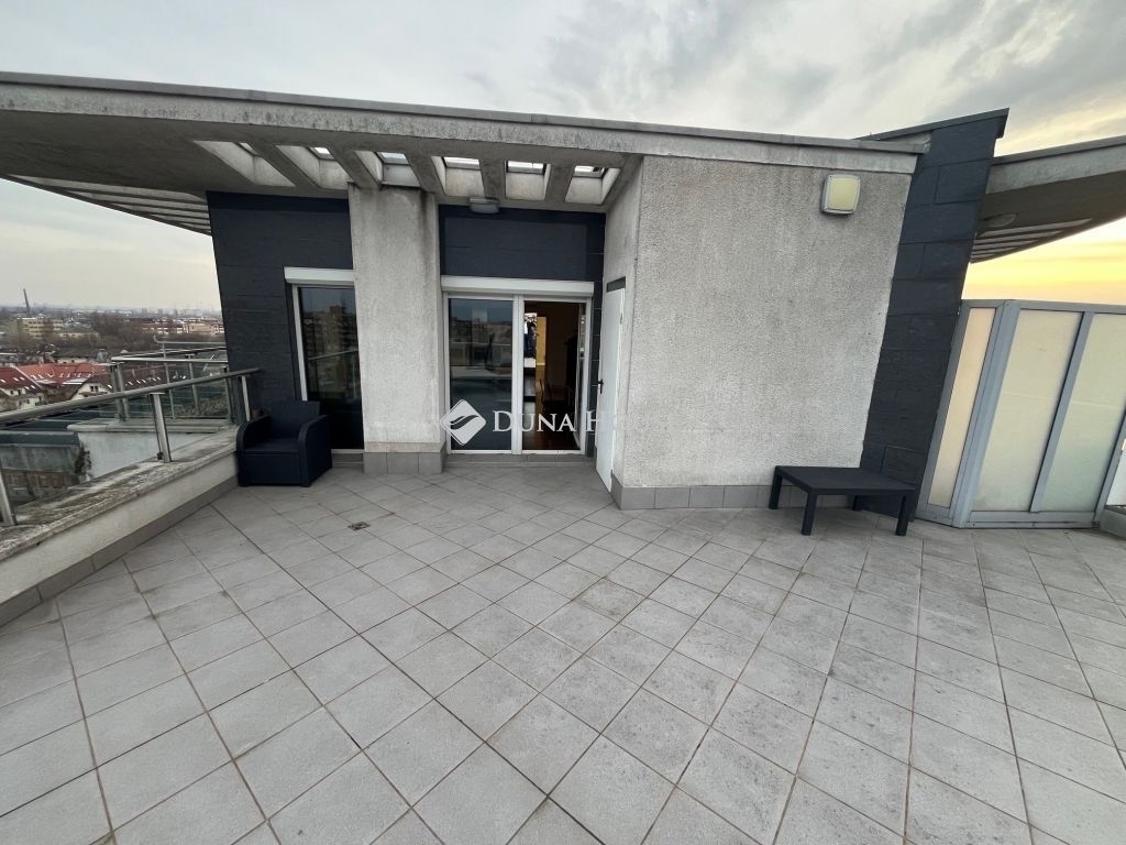 + NAPLEMENTE RITKASÁG A PIACON! Szeretne a város felett lakni, és élvezni a naplementét a saját, 65 négyzetméteres tetőteraszán? Eladásra kínálunk Újpest közkedvelt, csendes részén egy 44 m²-es, penthouse jellegű lakást, amelyhez egy kivételes méretű, 65 m²-es panorámaterasz tartozik. Ez az ingatlan igazi kuriózum: a belváros közelsége és a kertvárosi nyugalom tökéletes ötvözete.AZ INGATLAN JELLEMZŐI: Alapterület: 44 m² lakótér + 65 m² terasz. Elosztás: Tágas, világos amerikai konyhás nappali, amely közvetlen kapcsolatban áll a terasszal. Nagy terasz: A lakás ékköve! A 43 m²-es felület lehetőséget ad kerti bútorok, grillterasz, napozóágyak vagy akár egy mini kert kialakítására is. Tájolás: Nyugati fekvésű minden este csodálatos naplementében lehet része.Emelet: Legfelső emelet (nincs felső szomszéd!), így garantált a csend és a szeparált nyugalom.KÖRNYÉK ÉS KÖZLEKEDÉS: A lakás egy csendes, átmenő forgalomtól mentes utcában található, mégis kiváló közlekedés mellett:Újpest-központ (M3-as metró, buszvégállomás, villamosok): Mindössze 10 perc kényelmes sétára.A közelben található piac, bevásárlási lehetőségek, gyógyszertár és minden, ami a hétköznapi élethez szükséges.KINEK AJÁNLOM? Tökéletes választás egyedülállóknak vagy pároknak, akiknek fontos a nagy szabadtéri élettér, de befektetésnek is kiváló, hiszen az ilyen nagy teraszos ingatlanok rendkívül gyorsan és magas áron kiadhatók.Ne maradjon le erről a különlegességről! Az ingatlan rugalmasan megtekinthető.