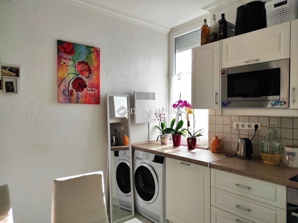 FELÚJÍTOTT 51 NM-es, ERKÉLYES LAKÁS NAGY KONYHÁVAL AZ IZZÓ LAKÓTELEPENEladó Újpest kertvárosias környezetében található, teljes mértékben felújított, 51 nm-es, erkélyes, 3. emeleti lakás.A lakás jellemzői: - csendes, kertvárosias környezetben található - teljesen felújított - 3. emeleti középső lakás - alacsony rezsi ( gáz 5-10 ezer FT/hó fűtési szezonban, villany 7500-12000 Ft/hó ) - hűtő, fűtő klíma a nappaliban - a műanyag ablakok redőnnyel, szúnyoghálóval felszereltek - déli tájolás, napfényes, világos szobák és konyha - erkélykapcsolatos, tágas nappali, egyik fal mentén mennyezetig érő beépített szekrénnyel, polcos, akasztós, fiókos elemekkel - a szobában álmennyezetbe épített hangulatvilágítás, távirányítható LED csíkkal - a látványkonvektor a fűtés mellett a kandallók lángjának hangulatát idézi - 2 ablakos!, világos konyha beépített gépekkel felszerelve ( indukciós főzőlap, elektromos sütő, hűtő, fagyasztó, nagy méretű mosogató gép, mikró ) - a konyha a 6 személyes étkező asztallal is tágas érzetet kelt, igazi ritkaságnak számít - kádas fürdőszoba WC-vel - a melegvizet új, 80 literes villanybojler szolgáltatja - a lakás frissen festve - a pincében 2 lakással közösen használt nagy tároló zárható szekrényekkel - közös költség 9700 Ft. - csendes, jó lakóközösségKözlekedés: - 220-as busz a ház előtt áll meg, de 5-6 perces séta távolságra van a 30 és 30A buszok megállója is - a belváros autóval 15 perc, MO autópálya 5 perc alatt elérhető - M3 metró 15 perc busszalBoltok, óvoda, iskola, gyógyszertár, sportolási lehetőség pár perc sétával elérhető.Közelben van a Szilas park és Farkas-erdő.Az ingatlan 1/1 tulajdonú, tehermentes.Ideális otthon pároknak, egyedülállóknak, és befektetőknek is!