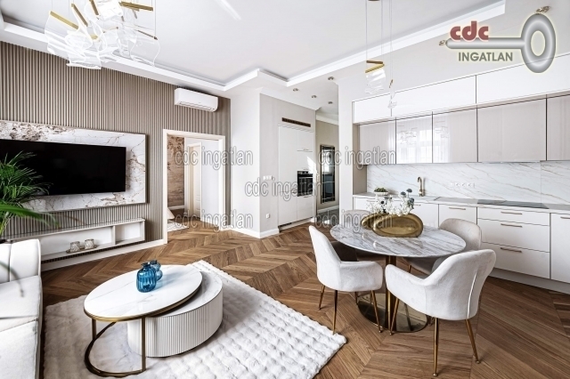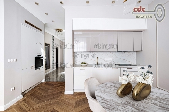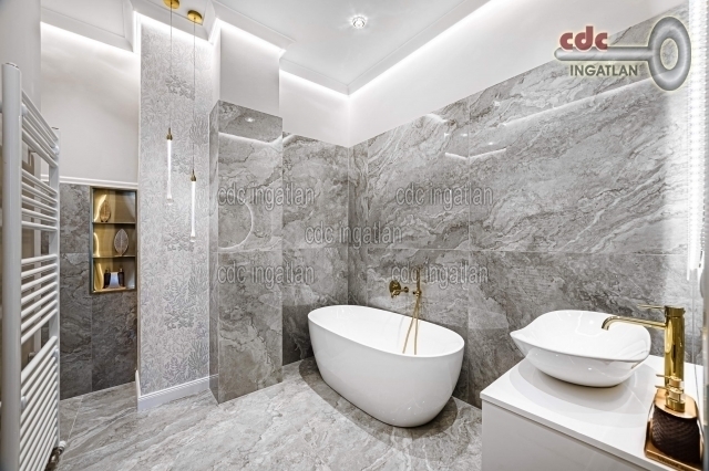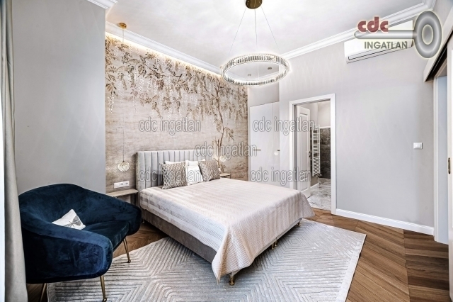 fő hálószobához egy elegáns káddal, WC-vel és bidével felszerelt fürdőszoba kapcsolódik, míg a második szobához egy modern zuhanyzós fürdő. Az ingatlan prémium minőségű bútorokkal és gépekkel együtt eladó, így az új tulajdonos azonnal beköltözhet egy teljesen felszerelt, exkluzív otthonba. A teljes körű felújítás során megtörtént a víz- és villanyvezetékek, valamint a fűtéscsövek, radiátorok cseréje. Designer csillárok, beépített szekrények, minőségi szaniterek és prémium burkolatok kerültek beszerelésre. A 3,30 méteres belmagasság és a chevron mintás tölgyfa parketta különleges, elegáns hangulatot kölcsönöz az otthonnak. A konyha teljesen gépesített, AEG márkájú készülékekkel felszerelt, mosogatógép, hűtő fagyasztóval, sütő, mikró, főzőlap, páraelszívó és mosógép is rendelkezésre áll. A lakás kényelmét két légkondicionáló és automata redőnyök, plusz sötétítők biztosítják. A fűtést házközponti rendszer biztosítja, a közös költség vízzel együtt 53.709.- Ft havonta. A társasház a klasszikus budapesti építészeti stílust képviseli. Az épület az 1900-as évek elején épült, és azóta számos felújításon esett át, megőrizve eredeti báját és eleganciáját. Az ingatlan, a lifttel felszerelt társasház 2. emeletén található a lépcsőházból nyílik a bejárati ajtó. A közvetlen közelben több busz- és villamosvonal elérhető, amelyek gyors és kényelmes kapcsolatot biztosítanak a város többi részével. Ez a lakás nem csak otthonként, hanem befektetésként is tökéletes választás azok számára, akik a belvárosi luxust és kényelmet keresik. Az ingatlan minden részlete a legmagasabb színvonalat