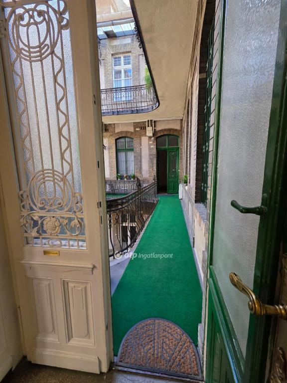 A lakás egy 4 emeletes lifttel szerelt, patinás épület 3. emeletén található, ablakai többek között a Ferenciek téri templomra, és az Ybl Palotára néznek, mindegyik ablaka az utcára néz, kivéve a konyha és a kis szoba.