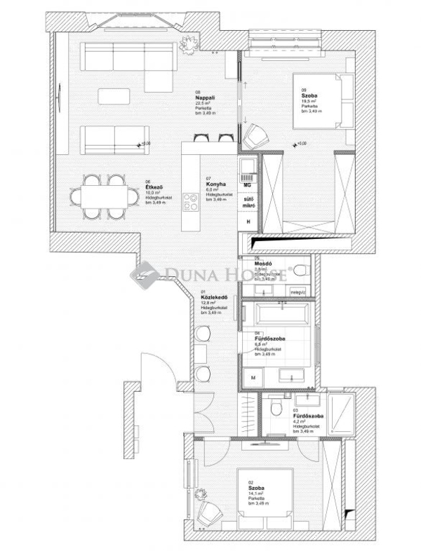 Alapterület: 96 m²Emelet: 3. emelet