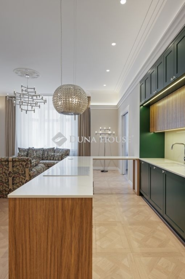 A lakás klasszikus eleganciát és modern kényelmet ötvöz, tágas tereivel és minőségi anyagaival exkluzív, mégis otthonos hangulatot biztosít.