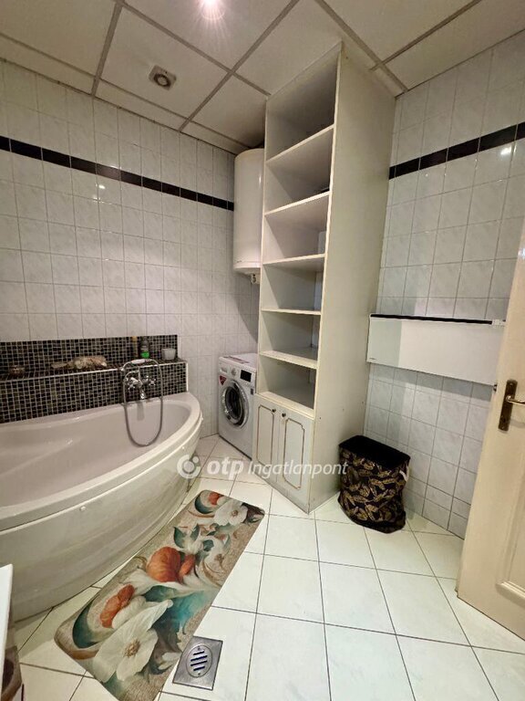 Modern kényelem: Elektromos fűtőpanelek (gáz visszaállítható), sarokkádas fürdő, beépített szekrények.