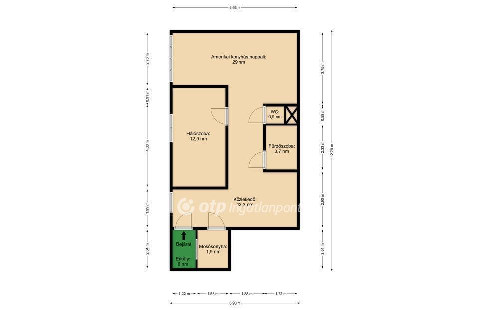 - Amerikai konyhás nappali + külön nyíló hálószoba