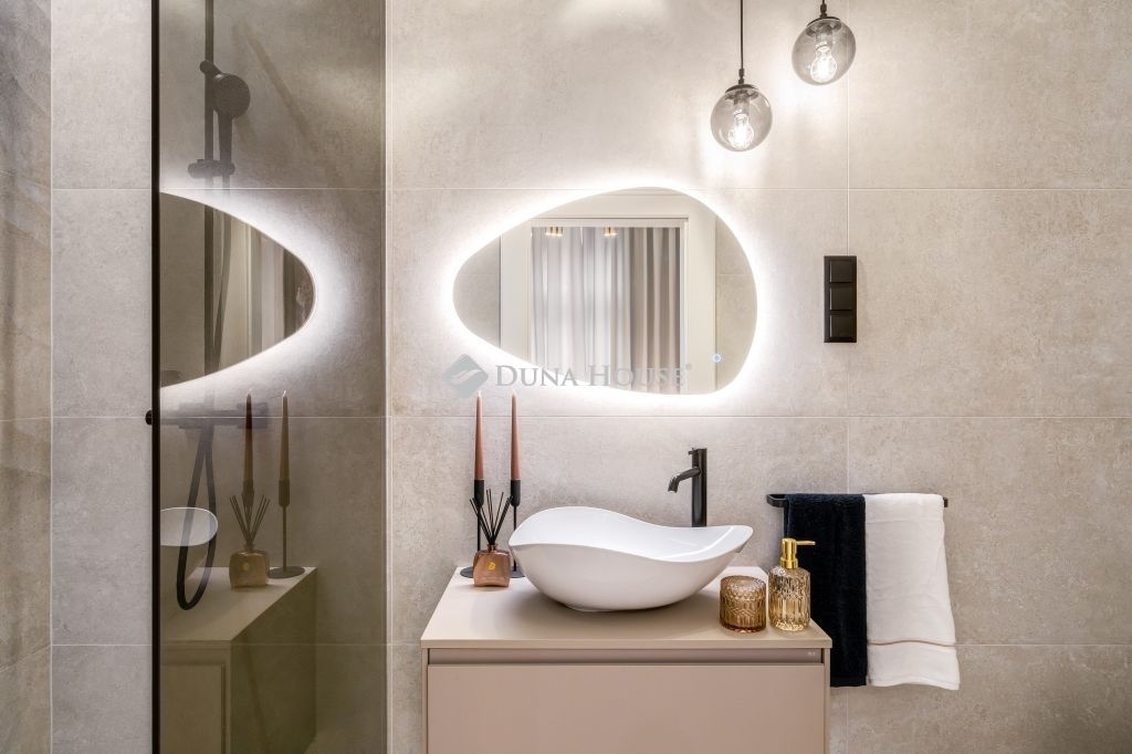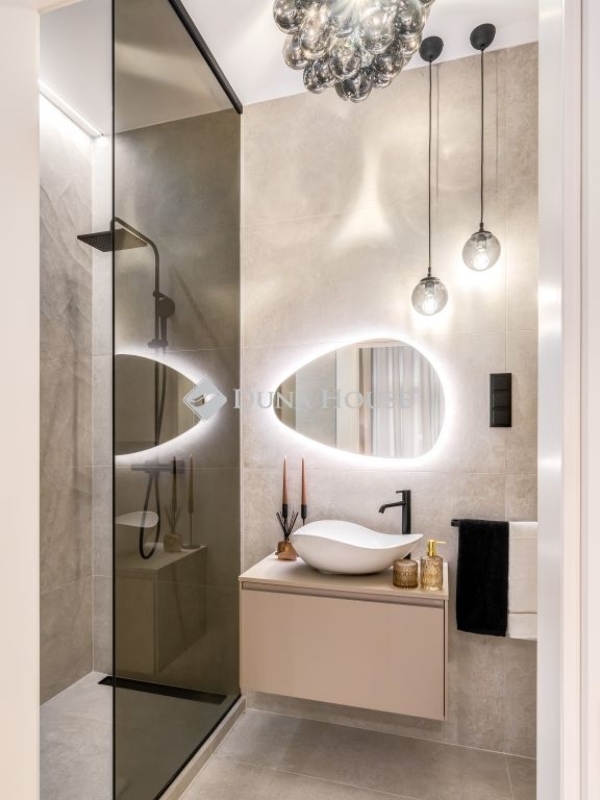 Hálószobák díszfalait lamellákkal és a 2025 év egyik legelegánsabb falpaneljeivel burkolták, melyek elegáns felületei különleges hatást kölcsönöznek a térnek. Ágyak egyedileg ide tervezett kárpit fejvégeket kaptak, melyek mögött led világítások teszik minél hangulatosabbá a szobákat. A fürdőszobákban kiváló minőségű szaniterek ( Laufren, Villeroy&, Rokka, Deluzzo) és a lakás stílusához illő olasz design burkolatok (Marazzi) kerültek. A nappaliban és hálószobákban elektromos napellenző, sötétítő függönyök, hűtő-fűtő klímák kerültek beépítésre. A lakást neves designerek dekorációi (Kare, Art deco, Trusardi, IDdezing, Bo Concept, Einholtz stb.) teszik igazán modern elegáns hangulatúvá.