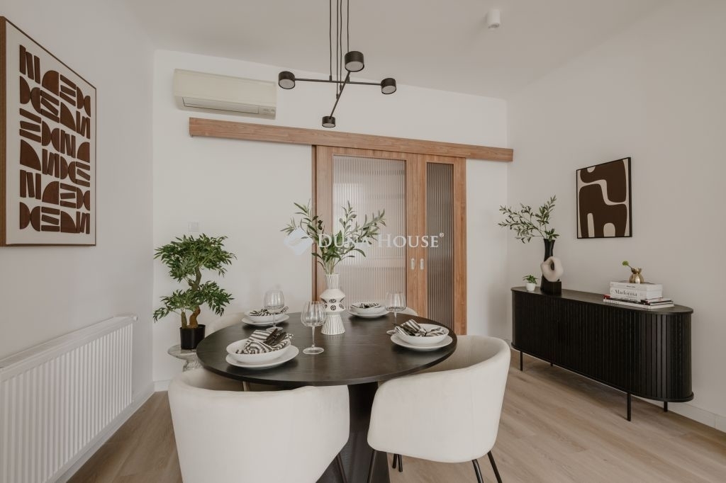 A lakás 2025-ben esett át teljes körű felújításon: új burkolatok, gépészet, villany- és vízvezeték-hálózat, modern fűtésrendszer (gáz cirkó + HMV tároló), valamint klímaberendezés gondoskodik a kényelmes mindennapokról. A világos, barátságos enteriőr természetes színekkel, prémium minőségű anyagokkal és letisztult, mégis meleg stílussal várja új tulajdonosát.