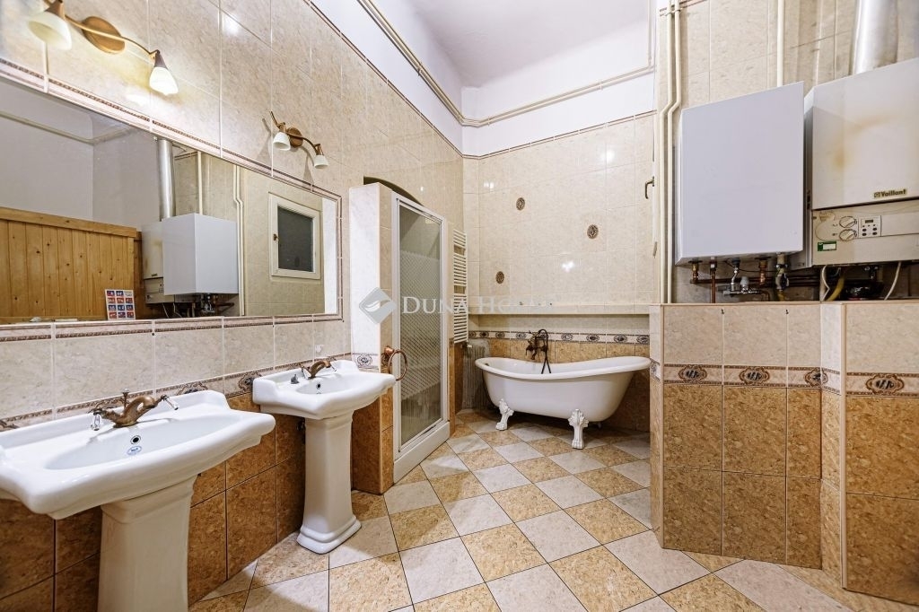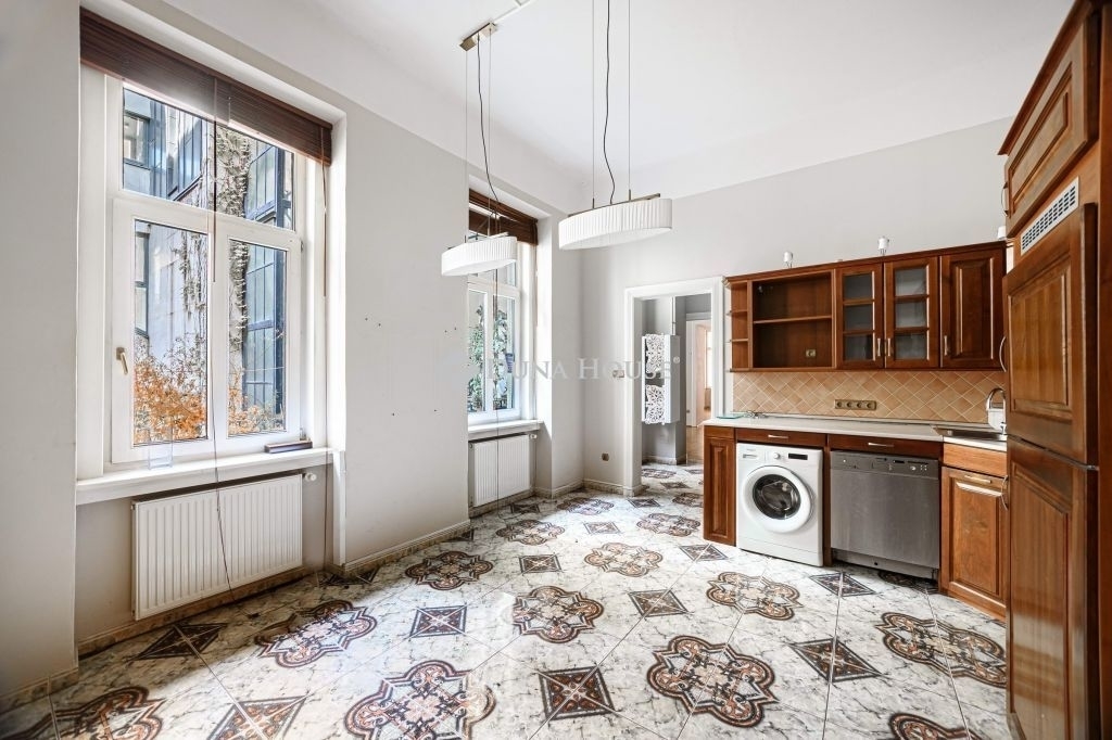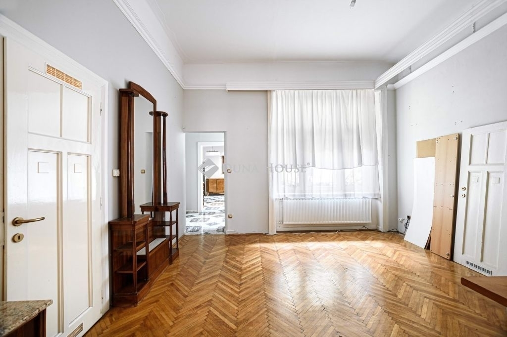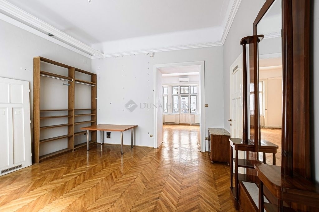 CSAK KIZÁRÓLAG A DUNA HOUSE KÍNÁLATÁBAN!V., GERLÓCZY UTCA - KÖZEPES ÁLLAPOTÚ - ERKÉLYES!V.kerületben a GERLÓCZY utcában ELADÓ egy 128 nm-es közepes állapotú 1. emeleti lakás.AZ ÉPÜLET:A nyomokban szecessziós elemeket is tartalmazó, egyébként eklektikus stílusú épület 1903-ban épült. Tervezte: Hajós Alfréd és Villányi JánosAz ingatlan közepes állapotú, nyílászárói mind eredeti fa gerébtokos ablakok. A külső nyílászárókban az üvegezés ki lett cserélve, így kétrétegűek.A szobákban eredeti fa parketta található, a fürdőben és a konyhában hidegburkolat.A fürdőben a kazán 4 éves. A fürdőszobában a tulajdonosok kialakítottak egy finn szaunát is.A nappaliban található egy hagyományos fa tüzelésű kandalló, mely fantasztikus hangulatot ad ennek a szép polgári lakásnak. A lakás ÉNY-i tájolású!!Az ingatlan előzetes időpont egyeztetéssel rugalmasan megtekinthető!! Hibás hirdetés bejelentése