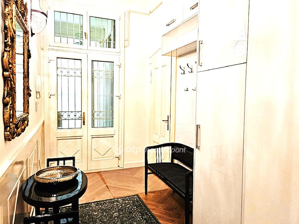 A Váci utca szomszédságában kínáljuk megvételre ezt a 92 m?-es, nappali + 2 hálószobás, 2 fürdőszobás, teljeskörűen és magas minőségben felújított lakást. A liftes, 4 szintes, elegáns téglaépület 3. emeletén található ingatlan minden részlete a kifinomult ízlésről és a modern kényelemről árulkodik. Elosztása: nappali, 2 hálószoba, 2 fürdőszoba, előszoba, konyha, mosókonyha. Főbb jellemzők: új, gépesített, prémium konyhabútor, felső kategóriás készülékekkel, teljesen berendezett, igényes belső kialakítás, klímaberendezés, mosó- és szárítógép, modern, elegáns fürdőszobák, hatalmas ablakok, elektromos redőnyök, modern cirko fűtés. Az ingatlan nem csupán otthon, hanem életstílus: kiváló választás azok számára, akik értékelik a belváros pezsgését, a kávézók, éttermek és kulturális központok közelségét, ugyanakkor egy elegáns, csendes lakás kényelmét keresik. Ez a különleges lakás ritka lehetőség a belváros egyik legexkluzívabb utcájában.